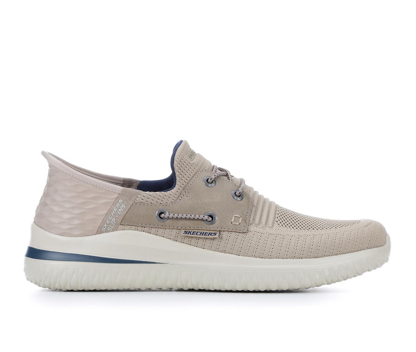 Simply step in and go wearing Skechers Hands Free Slip-ins®: Delson 3.0 - Roth. Designed with our exclusive Heel Pillow™. This Classic Fit style features an engineered knit and synthetic upper with stretch laces, a Skechers Air-Cooled Memory Foam® comfort insole and Goga Mat Arch™ cushioning for added support.