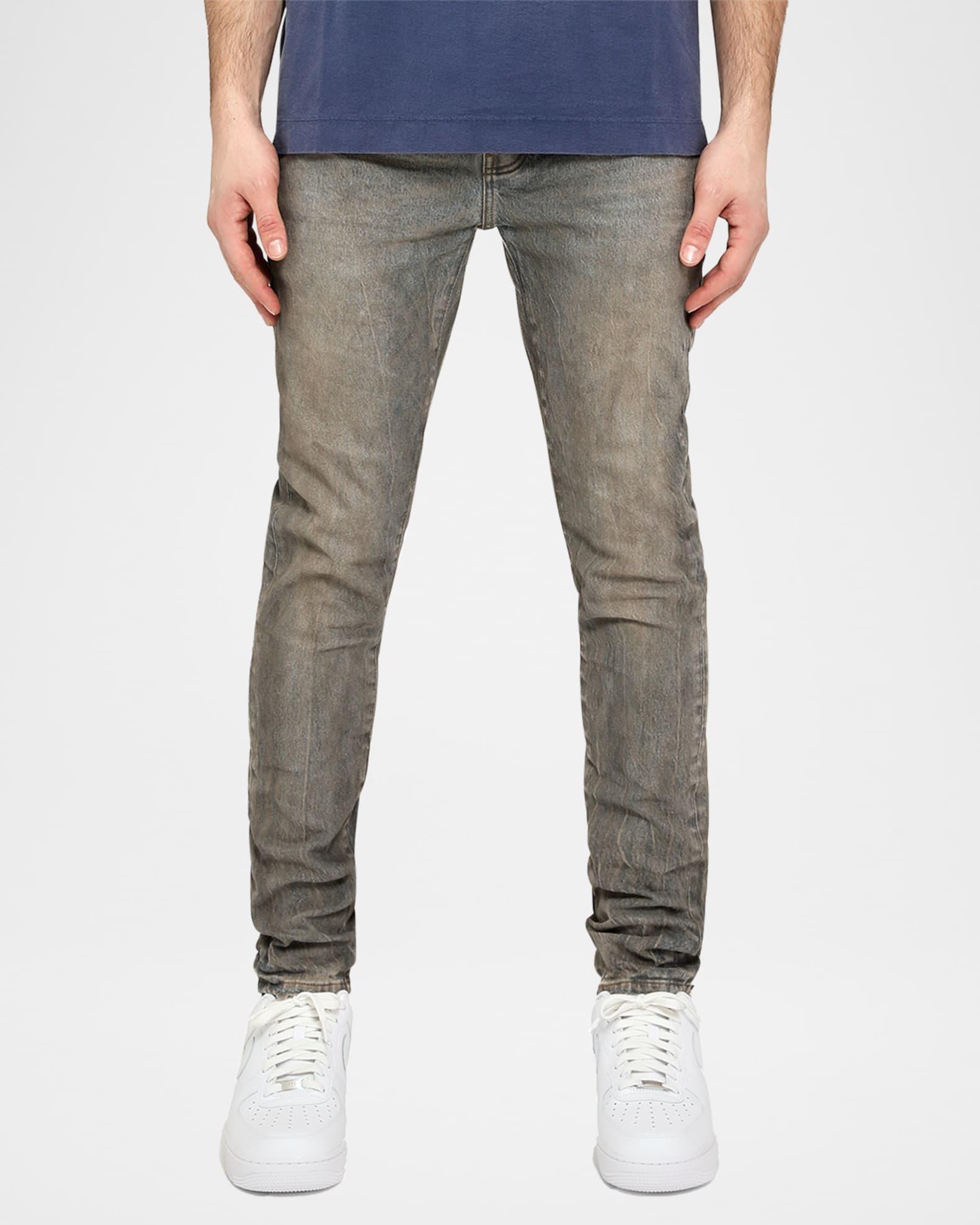 PURPLE presents a fresh feel for skinny jeans with a light wash effect, some whiskering, and a slight fading. Regular rise Button/zip fly; belt loops Five-pocket style Skinny fit Cotton/elastane Machine wash cold Imported