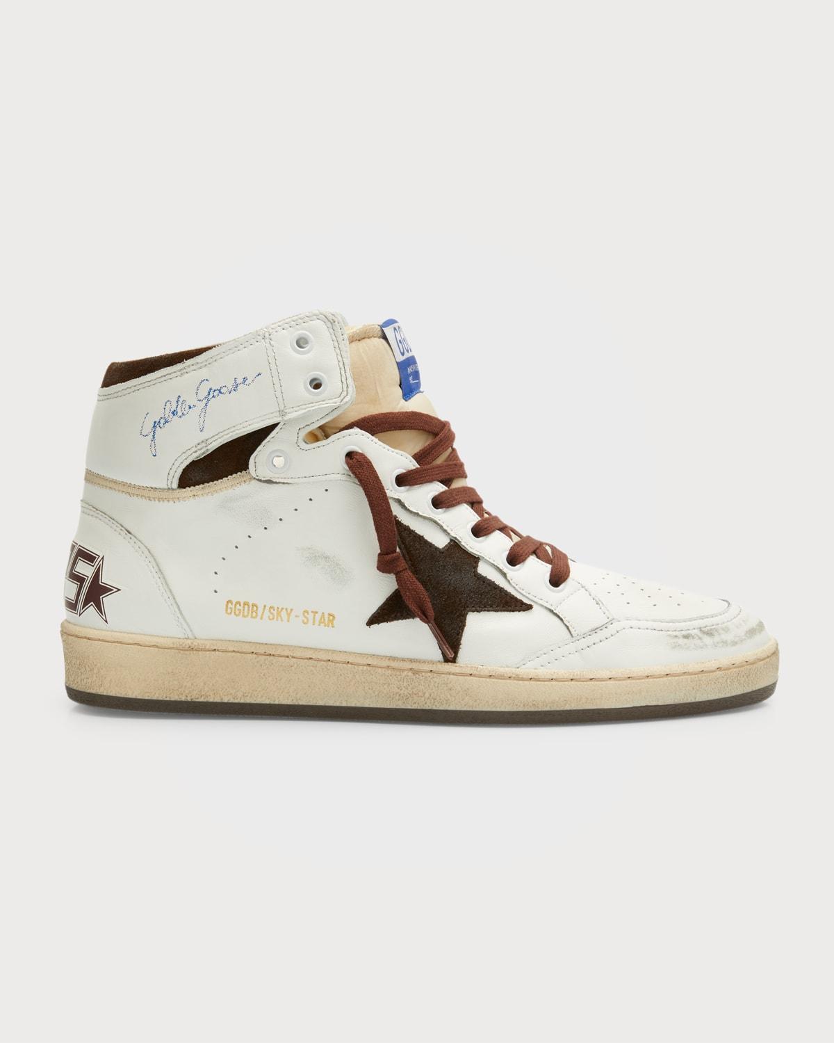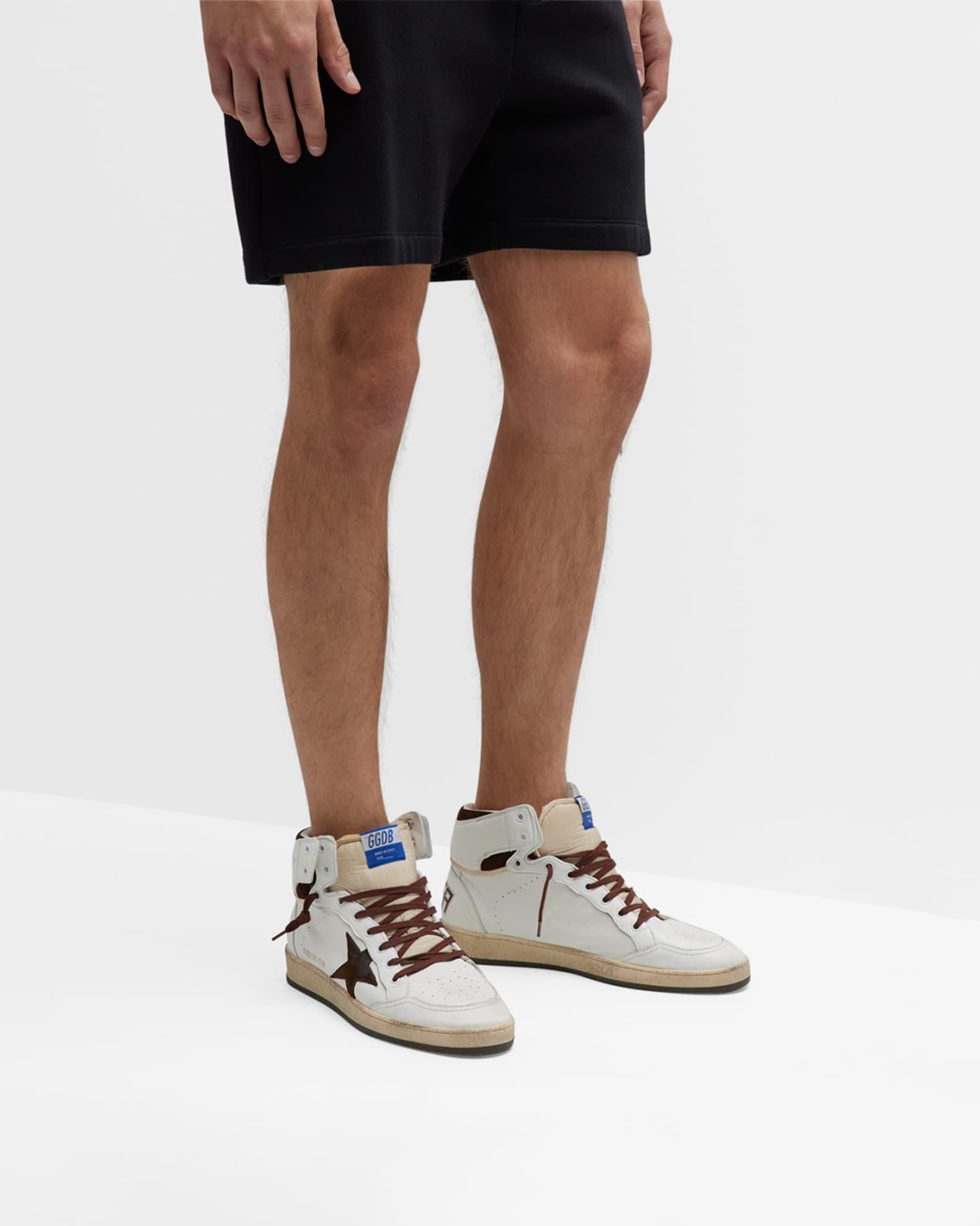 Crafted in Italy, these Golden Goose high-top sneakers feature suede overlays. Leather/textile upper Round toe Lace-up style Leather/cotton lining Rubber sole Made in Italy. Mens Shoes - Contemporary Lifestyle > Golden Goose > Saks Fifth Avenue > Barneys. Golden Goose. Color: White Beige Chocolate Brown. Size: 12.