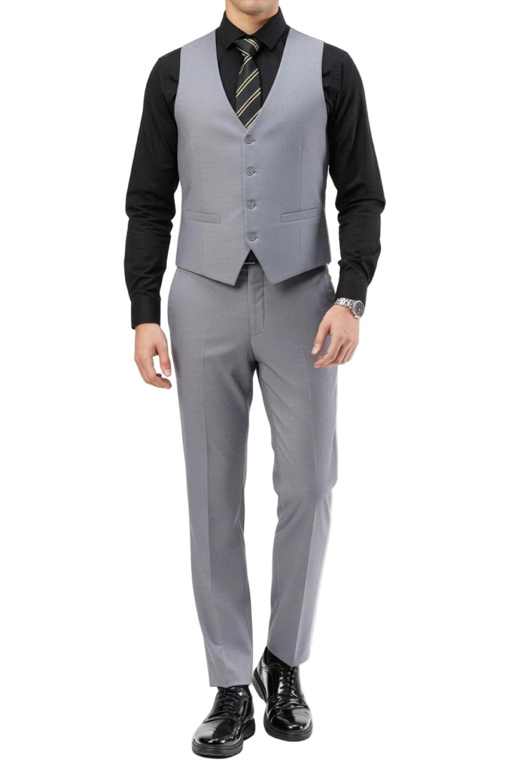 Men's Slim Fit Solid Gray 3 Piece Suit Male
