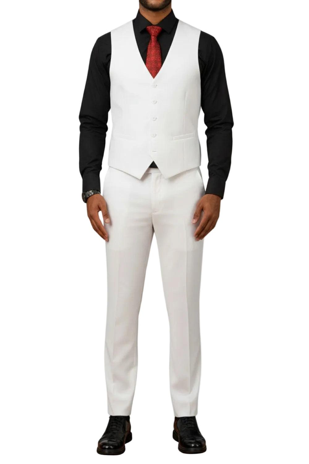 Men's Slim Fit Solid White 3 Piece Suit Male Product Image