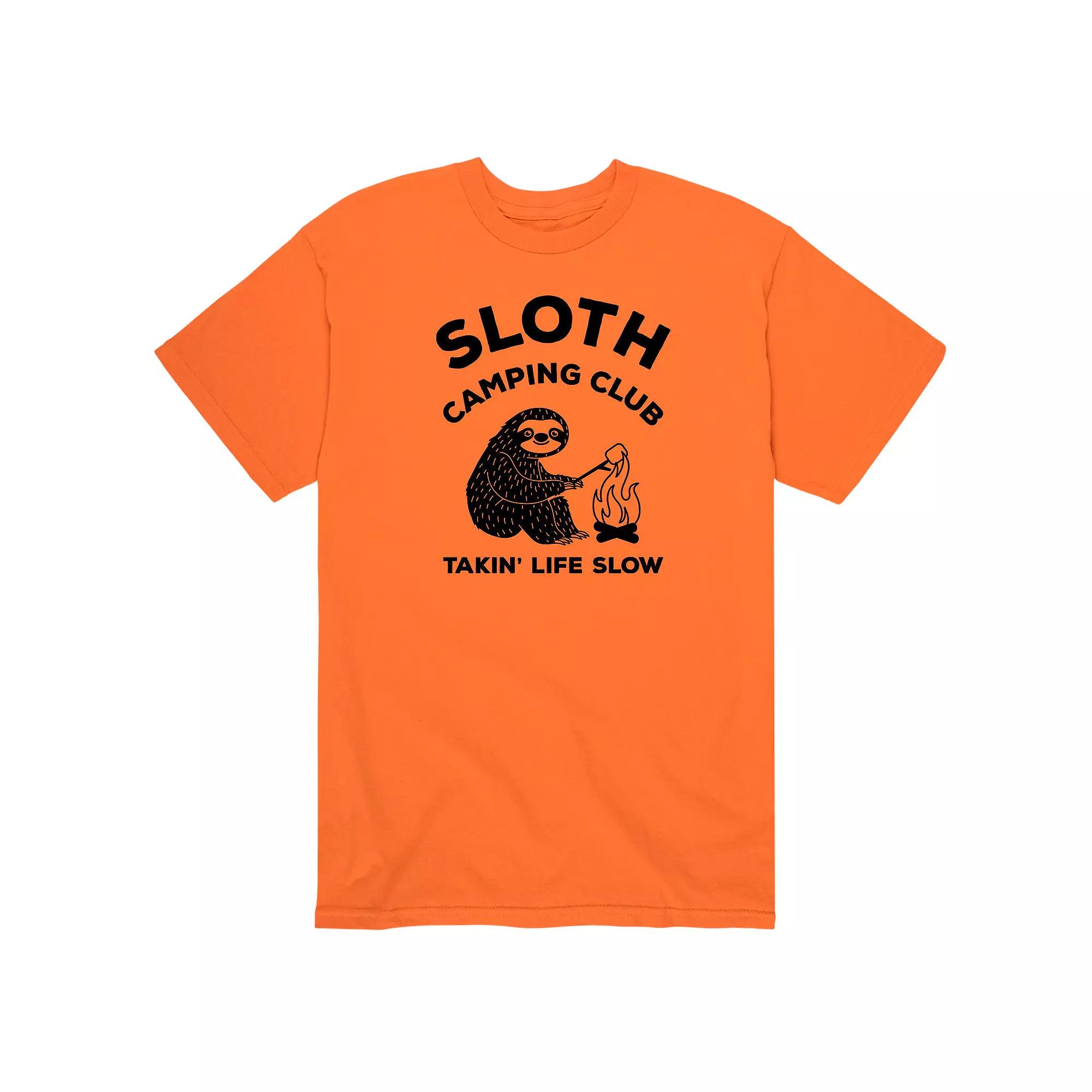 Take it slow with this mens sloth camping club tee. Take it slow with this mens sloth camping club tee. Crewneck Short sleevesFABRIC & CARE Cotton, polyester Machine wash Imported Color: Orange. Gender: male. Age Group: adult. Pattern: Graphic. Material: Cotton Blend.