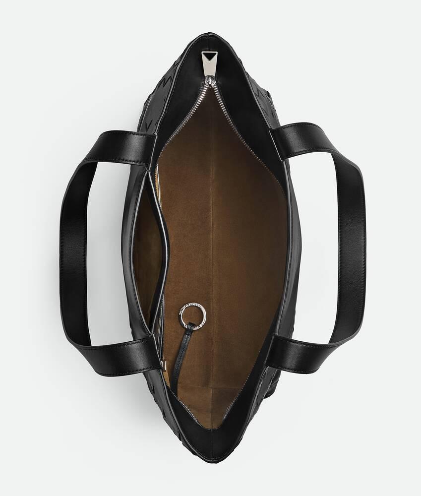 • Small Archive Intrecciato silky calfskin zipped tote bag with all-over dégradé effect• Single exterior concealed pocket with magnetic closure• One interior zipped pocket, one interior flat open pocket, one metal hook on a leather strap• Zipper closure