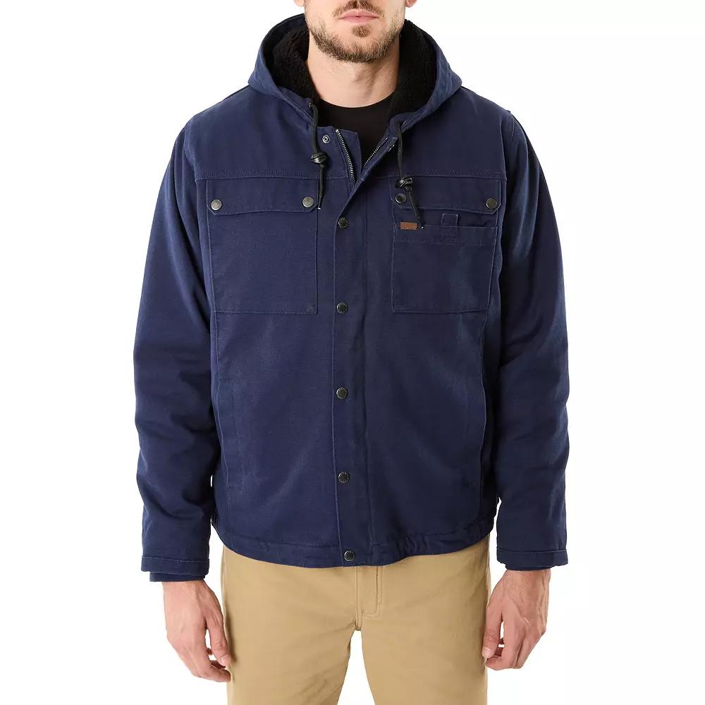 Stay comfy on the job or any time in this mens Smiths Workwear hooded shirt jacket featuring sherpa lining. Stay comfy on the job or any time in this mens Smiths Workwear hooded shirt jacket featuring sherpa lining. FEATURES Heavyweight warmth rating Heavyweight duck canvas shell Attached hood with drawstring Zipper front with snap placket and storm cuffs Sherpa lining Long sleeves Taffeta-quilted insulated sleeve lining 5 exterior pockets, 2 interior pockets Triple-tough stitchingFIT & SIZING 29-inch approximate length Regular fitFABRIC & CARE Shell: cotton Lining: polyester Machine wash Imported Size: XL. Color: Black. Gender: male. Age Group: adult. Material: Polyester|Cotton.