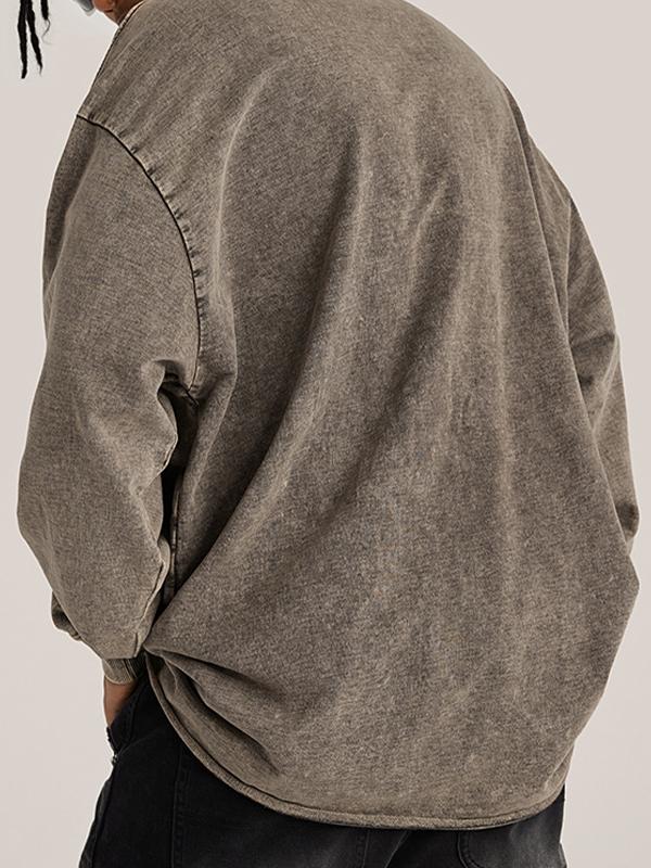 Men's Solid Color Washed Distressed Thin Sweatshirt