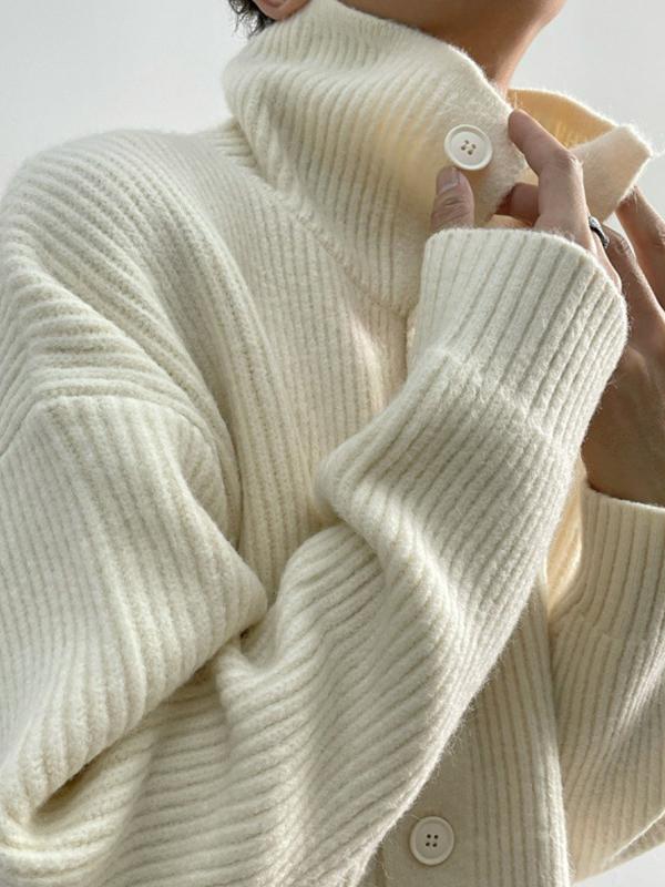 Men's Solid High Neck Breasted Sweater