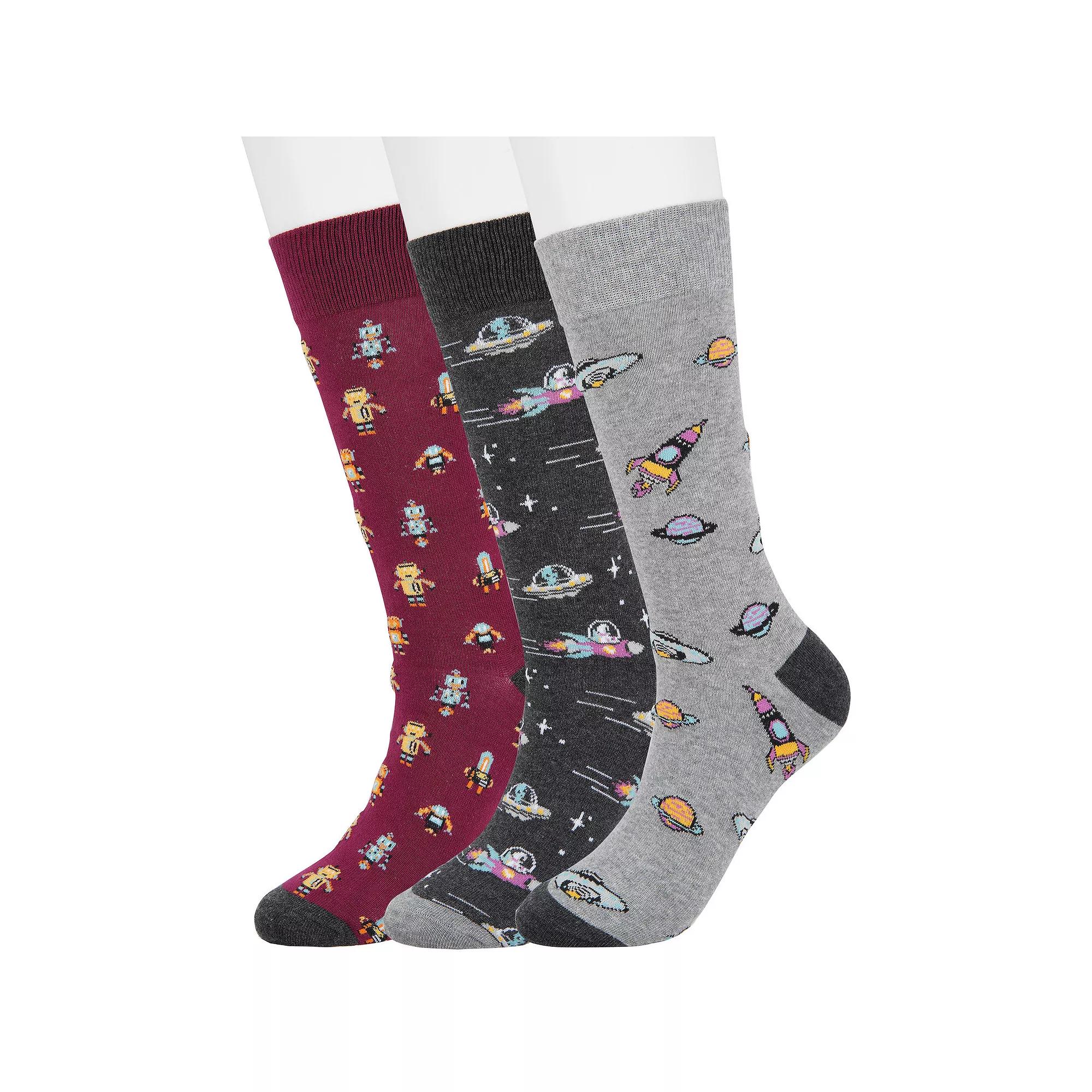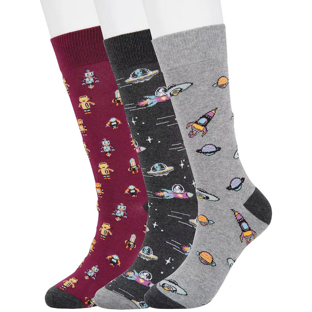 Add a little fancy footwork to your look with these mens novelty socks from Sonoma Goods For Life. 3-pack Crew length Lightly padded footbed Breathable fabricFABRIC & CARE Cotton, polyester, spandex Machine wash Imported Size: 7-12. Color: Futurist Fantasy. Gender: male. Age Group: adult.