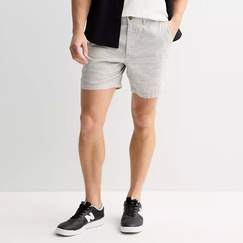Get ready for the warm weather season with these men's 7-in. Flexwear Flat Front Shorts from Sonoma Goods For Life. Click on this MEN'S GUIDE to find the perfect fit and more! FEATURES Zipper fly with button closure Elastic waistband 2 front pockets, 1 coin pocket, 2 back pockets Stretch twill constructionRESPONSIBLE Supports more sustainable cotton farming Tested for harmful substances STANDARD 100 by OEKO-TEX® CERTIFIED Certification No. 20.HBD.10569 HOHENSTEIN HTTI Testing Institute: Hohenstein Textile Testing Institute www.oeko-tex.com/standard100 FIT & SIZING 7-in. inseam Regular fitFABRIC & CARE 98% cotton (BCI), 2% spandex Machine wash Imported Size: 28 7 IN. Color: Ivory Black. Gender: male. Age Group: adult.