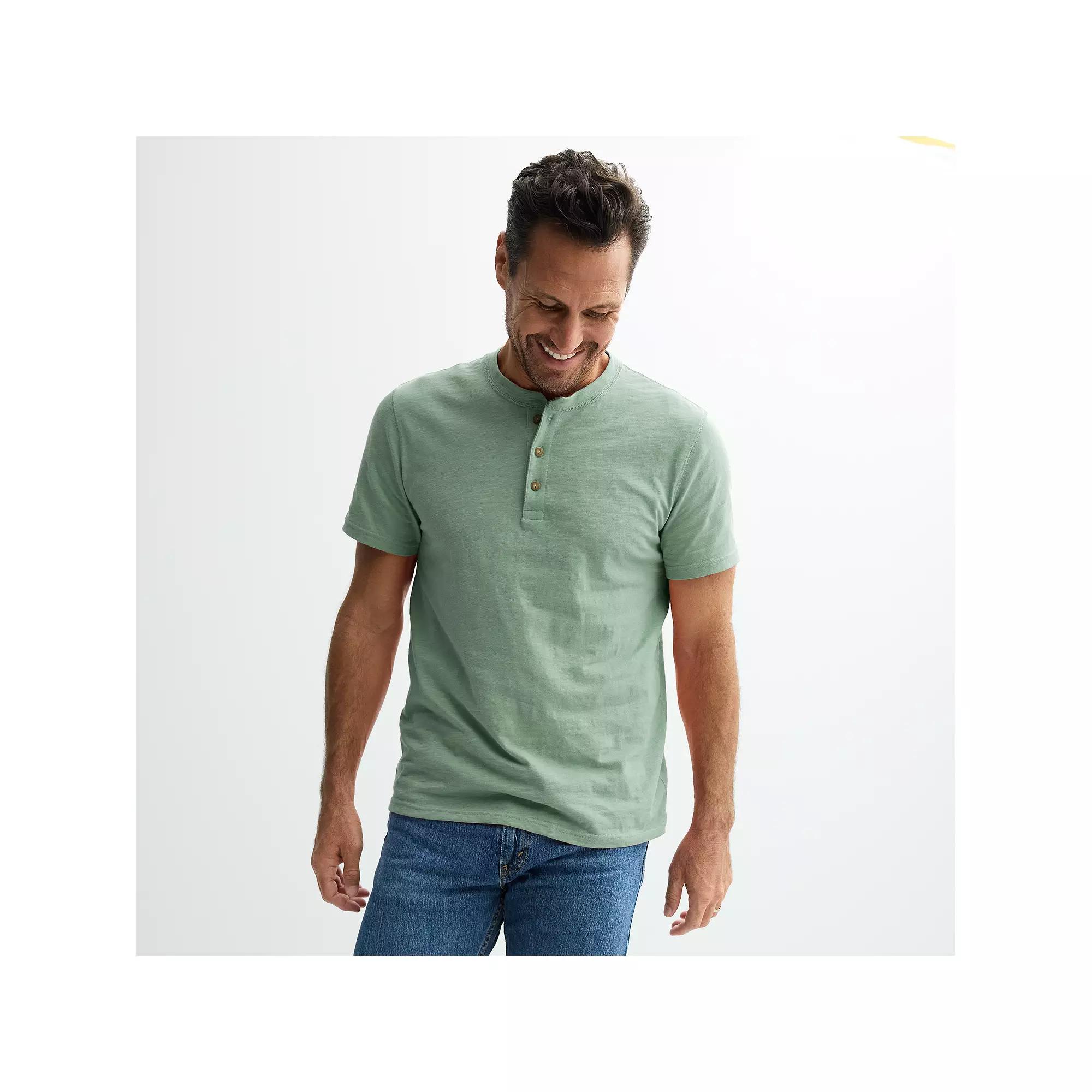 This Men's Sonoma Goods For Life Essential Short Sleeve Henley T-Shirt is the perfect pick whether you're layering your look or taking it back to basics. Click on this MEN'S GUIDE to find the perfect fit and more! This Men's Sonoma Goods For Life Essential Short Sleeve Henley T-Shirt is the perfect pick whether you're layering your look or taking it back to basics. Click on this MEN'S GUIDE to find the perfect fit and more! FEATURES Crewneck Henley button front closure Short sleeves Straight hemFABRIC & CARE Cotton, polyesterJersey construction Machine wash Imported Size: XL. Color: Sage. Gender: male. Age Group: adult.