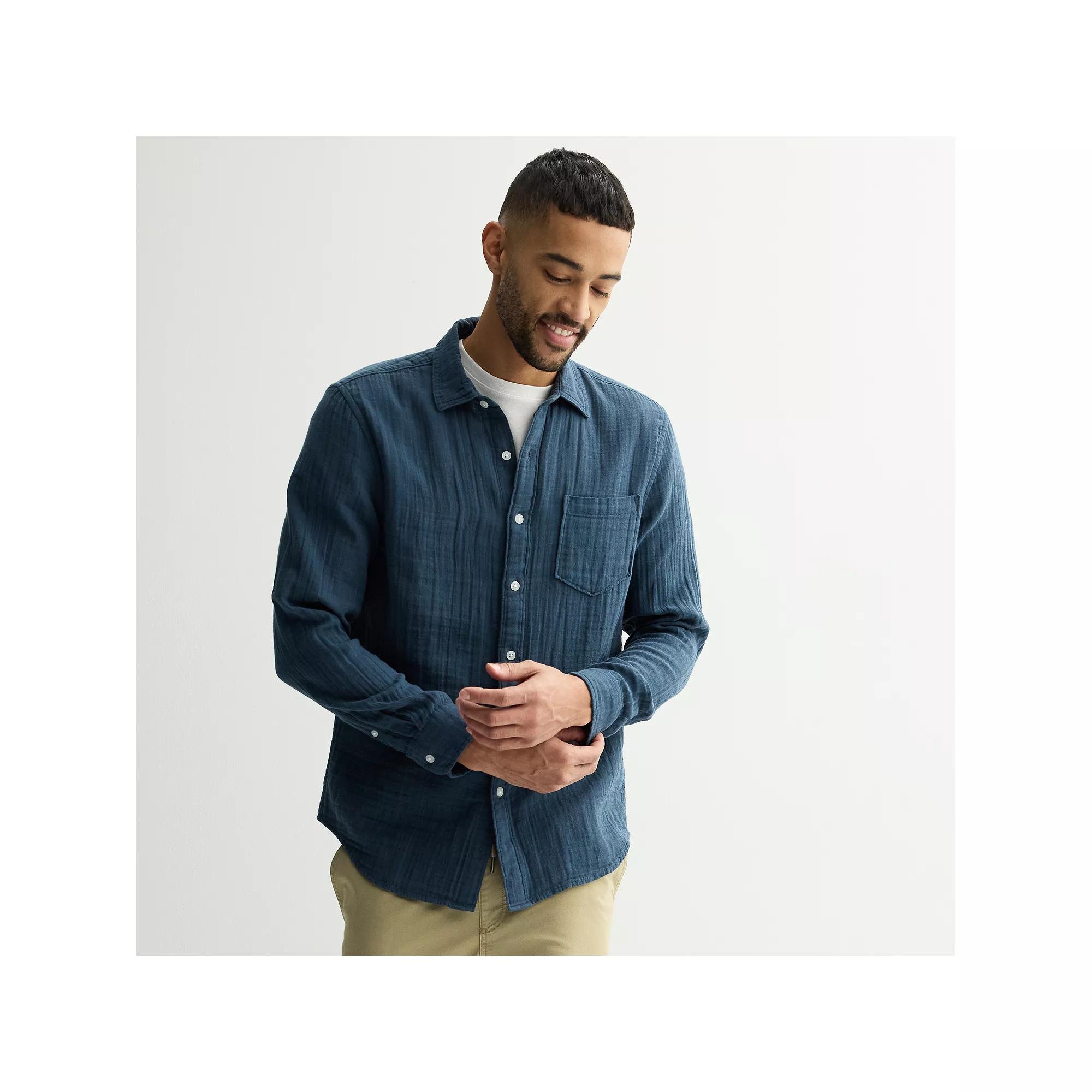 You're sure to love the the look and fit of this men's Sonoma Goods For Life Perfect Length double weave long sleeve button-down shirt. Click on this MEN'S GUIDE to find the perfect fit and more!You're sure to love the the look and fit of this men's Sonoma Goods For Life Perfect Length double weave long sleeve button-down shirt. Click on this MEN'S GUIDE to find the perfect fit and more!FEATURES Point collar Button-front closure Long sleeves Button cuffs One chest pocket at wearer's left side Shirttail hem Double weave constructionFABRIC & CARE Cotton Machine wash ImportedRESPONSIBLE Supports more sustainable cotton farming Size: XL. Color: Coolreek. Gender: male. Age Group: adult.