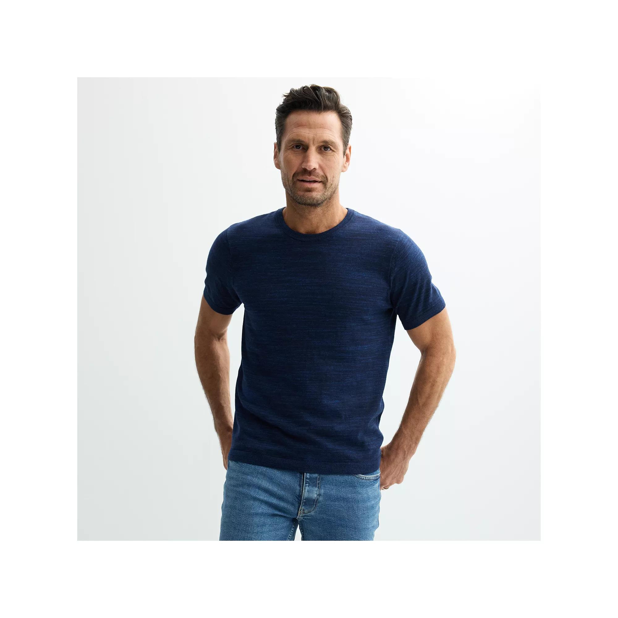 You'll love the casual style of this men's Sonoma Goods For Life sweater crewneck T-shirt. Click on this MEN'S GUIDE to find the perfect fit and more!You'll love the casual style of this men's Sonoma Goods For Life sweater crewneck T-shirt. Click on this MEN'S GUIDE to find the perfect fit and more!FEATURES Crewneck Short sleeve Ribbed hemline Pullover stylingFABRIC & CARE 60% cotton, 40% recycled polyester Machine wash ImportedRESPONSIBLE Supports more sustainable cotton farming Contains recycled polyester Color: Navy Black Heather. Gender: male. Age Group: adult.