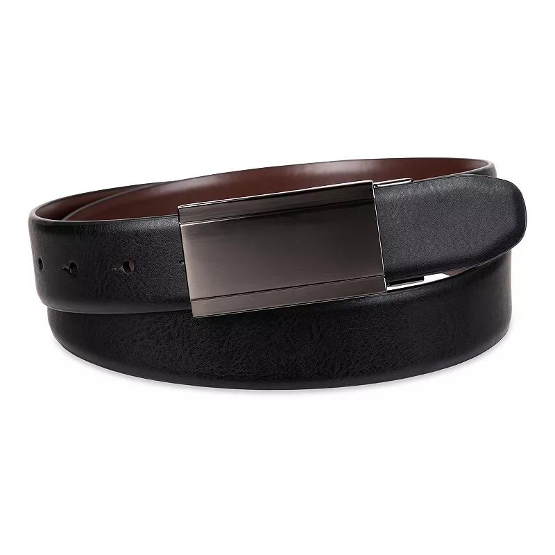 Give your accessories collection a versatile refresh with this mens plaque buckle reversible belt from Sonoma Goods For Life. Give your accessories collection a versatile refresh with this mens plaque buckle reversible belt from Sonoma Goods For Life. FEATURES 1.25-in. wide strap Plaque buckle Includes 7 holes for an adjustable fit Reversible constructionFABRIC & CARE PU, bonded leather Wipe clean Imported Size: XL. Color: Charcoal. Gender: male. Age Group: adult.