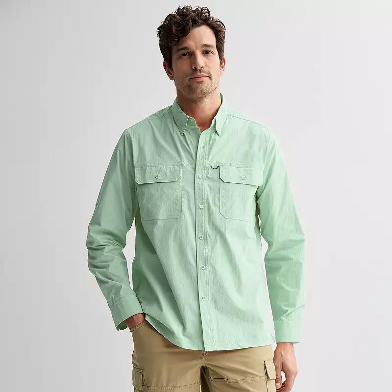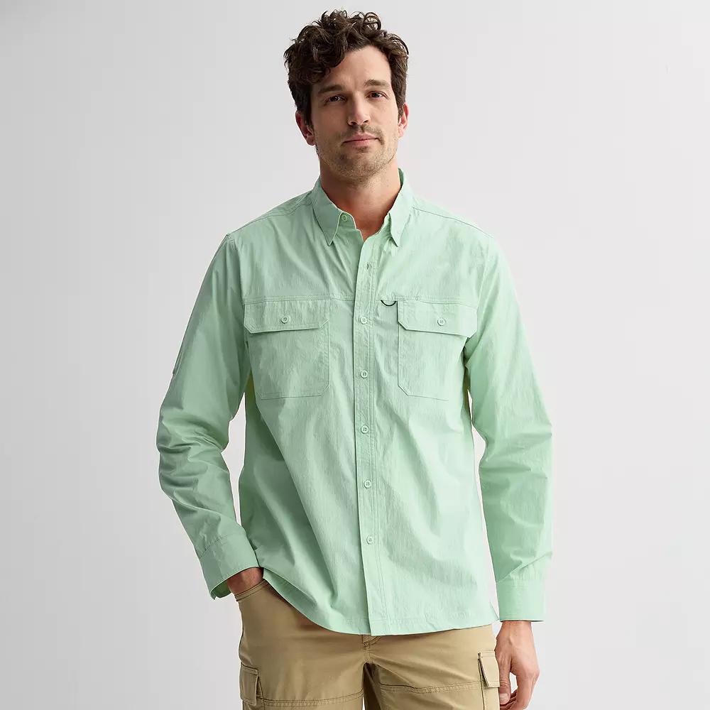Get ready for an adventure in this Men's Sonoma Goods For Life® Long Sleeve Outdoor Shirt. Click on this MEN'S GUIDE to find the perfect fit and more!Get ready for an adventure in this Men's Sonoma Goods For Life® Long Sleeve Outdoor Shirt. Click on this MEN'S GUIDE to find the perfect fit and more!FEATURES Moisture-wicking UPF-50 sun protection Button-front Long sleeve 2 pockets Vented hemFIT & SIZING Relaxed fitFABRIC & CARE Nylon, spandex Machine wash Imported Size: XXL. Color: Faintless Green. Gender: male. Age Group: adult.