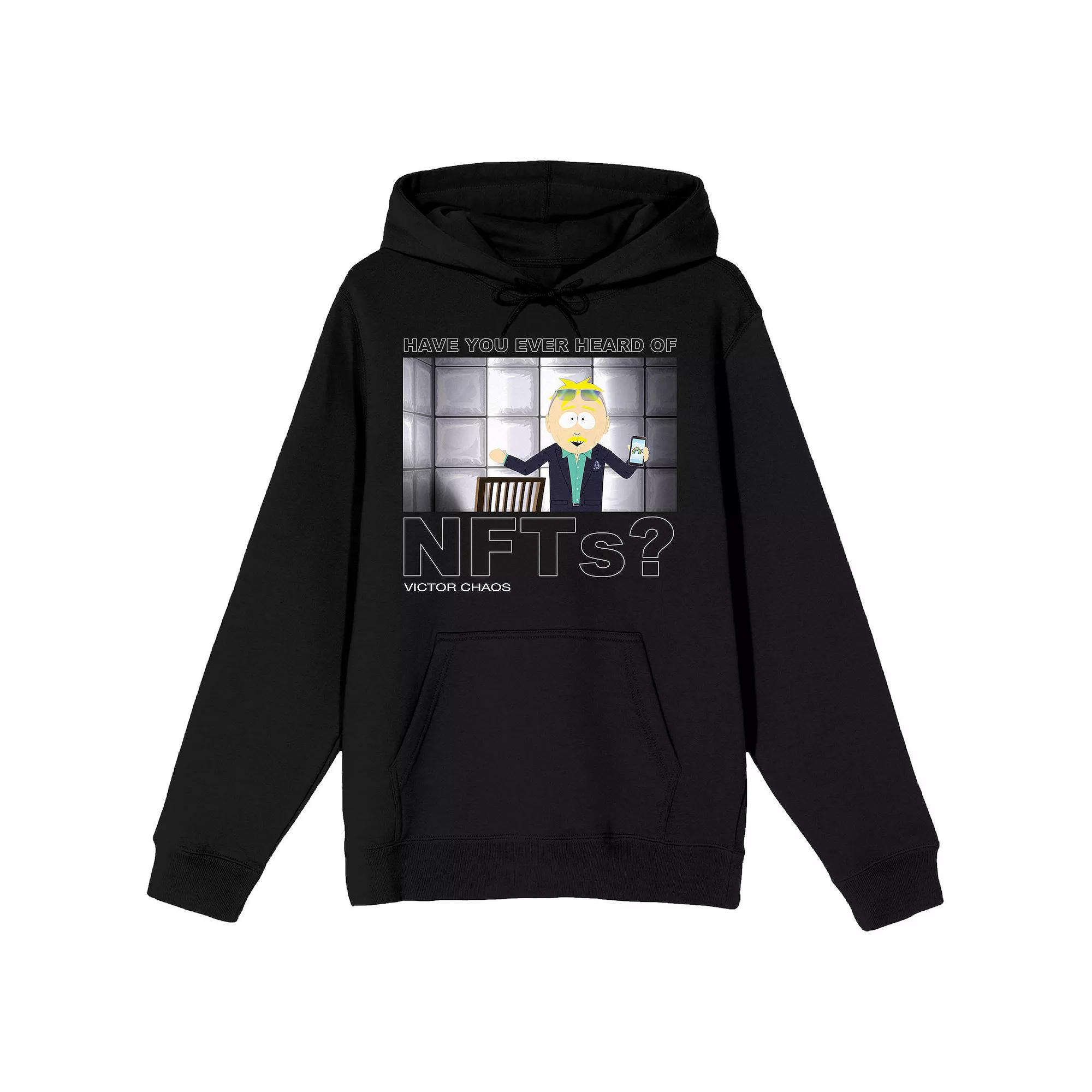 Give your wardrobe a refresh with this Mens South Park Victor Chaos NFTs Quote Graphic Hoodie. Give your wardrobe a refresh with this Mens South Park Victor Chaos NFTs Quote Graphic Hoodie. FEATURES Hooded Long sleeveFABRIC & CARE Cotton, polyester Machine wash Imported Color: Black. Gender: male. Age Group: adult. Material: Polyester|Cotton.