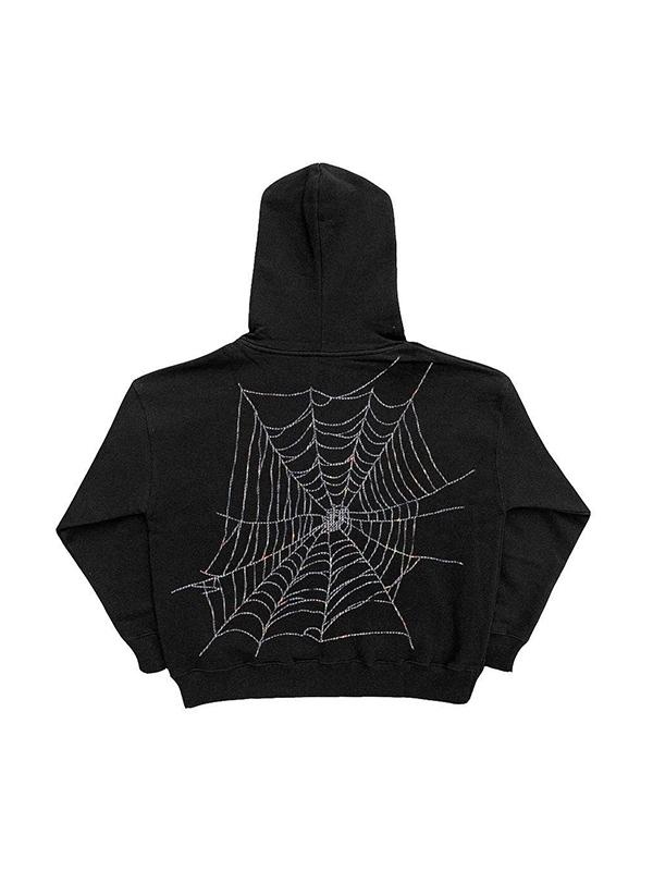 Men's Spider Rhinestone Print Full Zip Oversized Hoodie