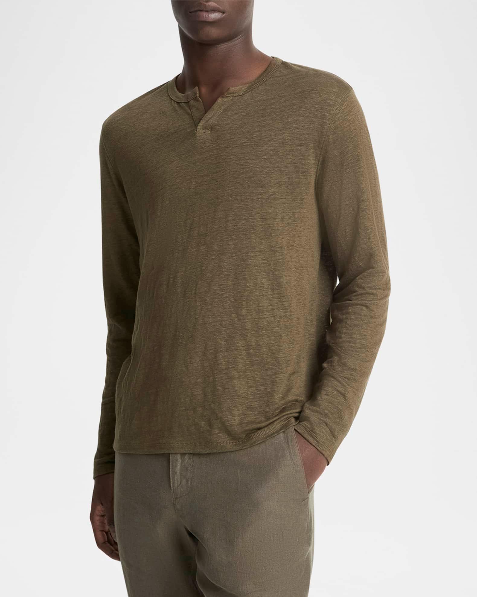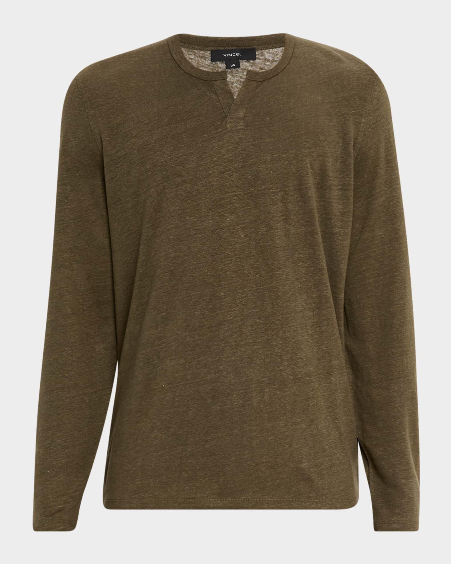 Men's mélange T-shirt by Vince Split henley neckline Long sleeves Relaxed fit Pullover style Linen Hand wash, machine wash, line dry Imported