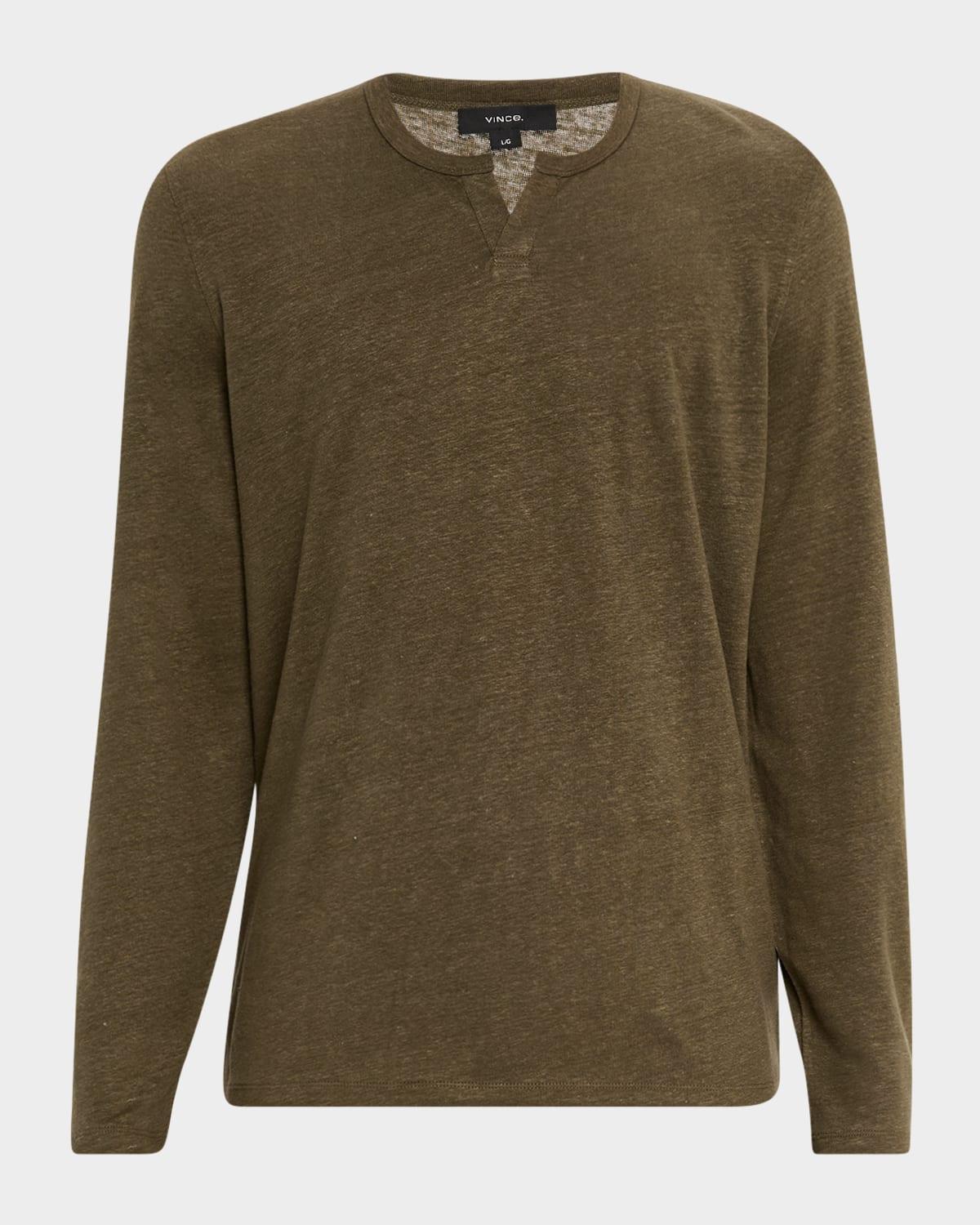 Men's Split-Neck Linen T-Shirt