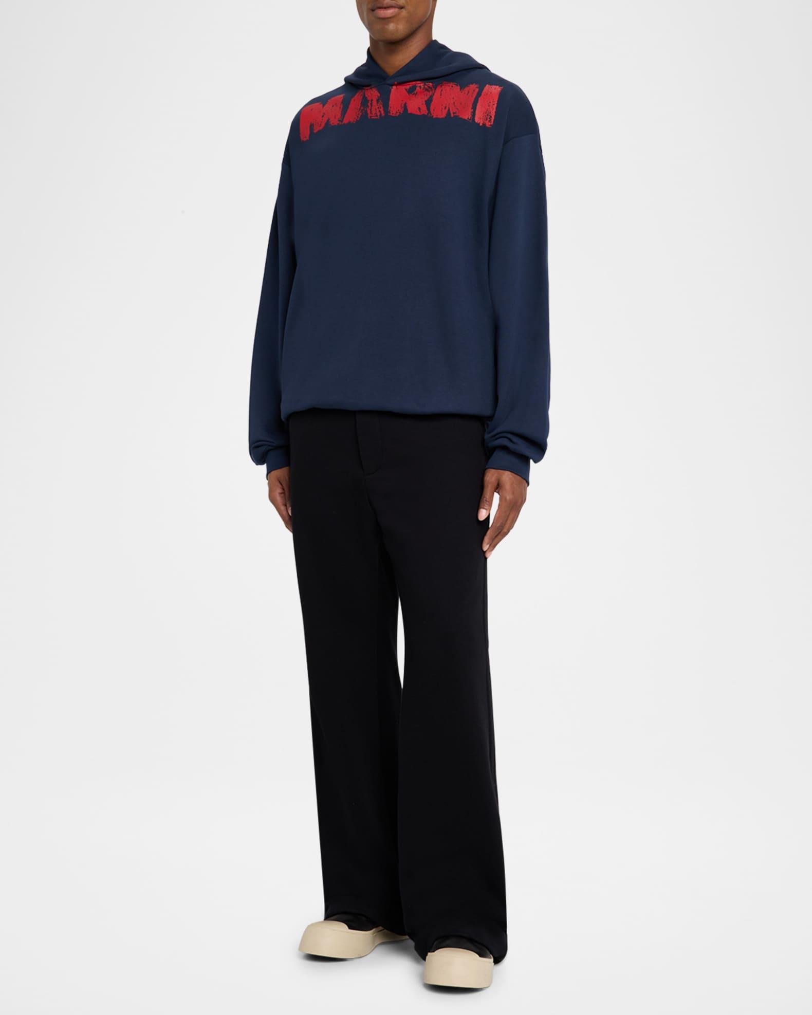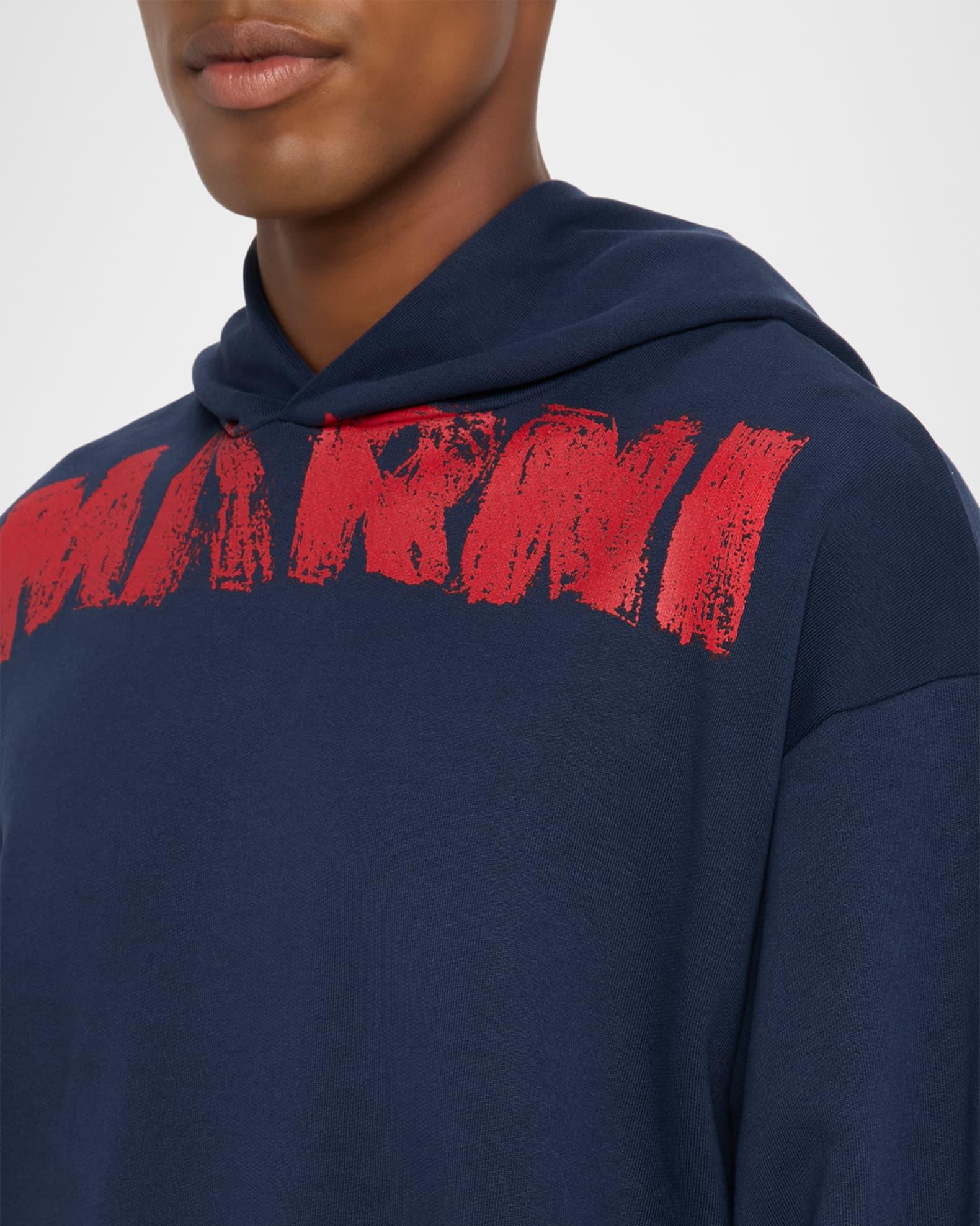 Marni hoodie defined by a bold spray paint logo across the chest Hooded neckline Long sleeves Ribbed cuffs and hem Pullover style Oversized fit Cotton Machine wash warm dry flat Made in Italy