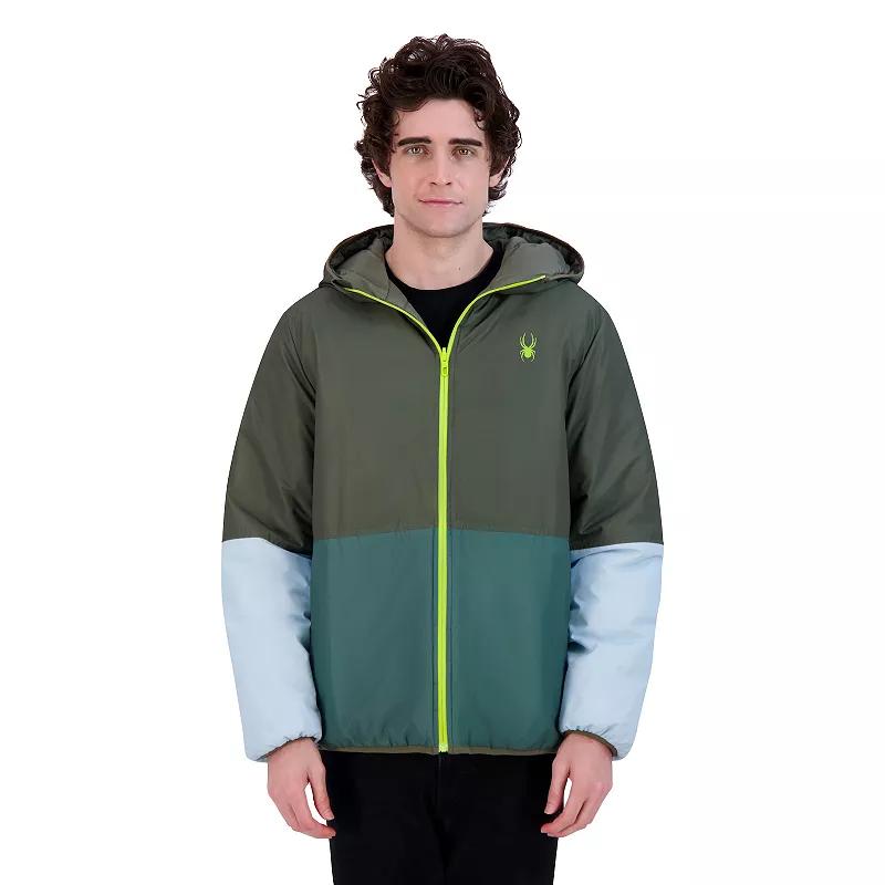 Combat the elements in this Mens Spyder Reversible Puffer Jacket. Click on this MENS GUIDE to find the perfect fit and more! Combat the elements in this Mens Spyder Reversible Puffer Jacket. Click on this MENS GUIDE to find the perfect fit and more! FEATURES Cowlneck Long sleeves Zipper closure Heavyweight Attached hood Exterior: 2 side zipper pockets Interior: 1 chest zipper pocket, 2 front open pocketsFIT & SIZING Classic fit Small: 29-in. length Medium: 29.5-in. length Large: 30.25-in. length XL: 31-in. length XXL: 31.75-in. lengthFABRIC & CARE Polyester Machine wash Imported Color: Blue. Gender: male. Age Group: adult.