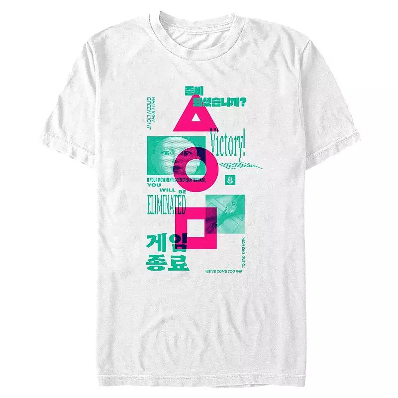 He'll love the look and feel of this Men's Squid Game Victory Or You Will Be Eliminated Poster Graphic Tee.FEATURES Crewneck Short sleeveFABRIC & CARE Cotton Machine wash Imported Color: White. Gender: male. Age Group: adult.