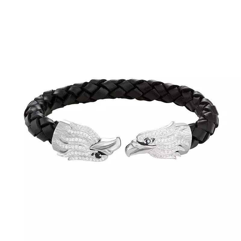 Men's Stainless Steel & Black Leather Cubic Zirconia Eagle Cuff Bracelet,  Product Image