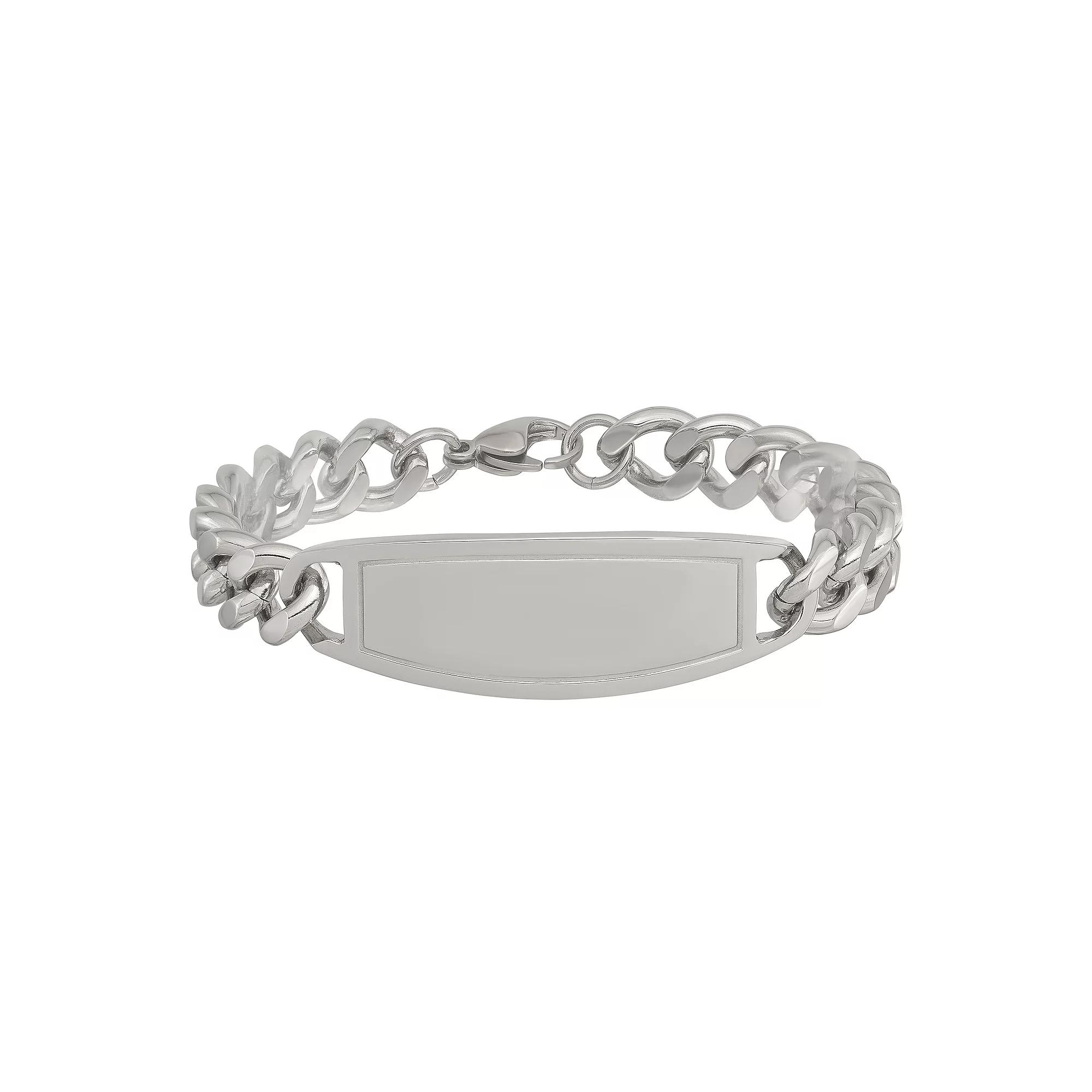 Featuring a stylish grooved ID plate that is perfect for engraving, this stainless steel men's bracelet makes a handsome gift. Featuring a stylish grooved ID plate that is perfect for engraving, this stainless steel men's bracelet makes a handsome gift. Length: 8.25 in. Clasp: lobster claw Metal: stainless steel Finish: polished Packaging: boxed Please note, due to the high value of this item, a signature may be required upon delivery. Size: 8.5". Color: White. Gender: male. Age Group: adult.