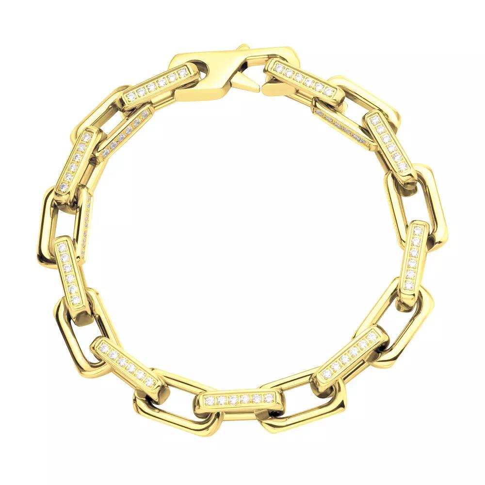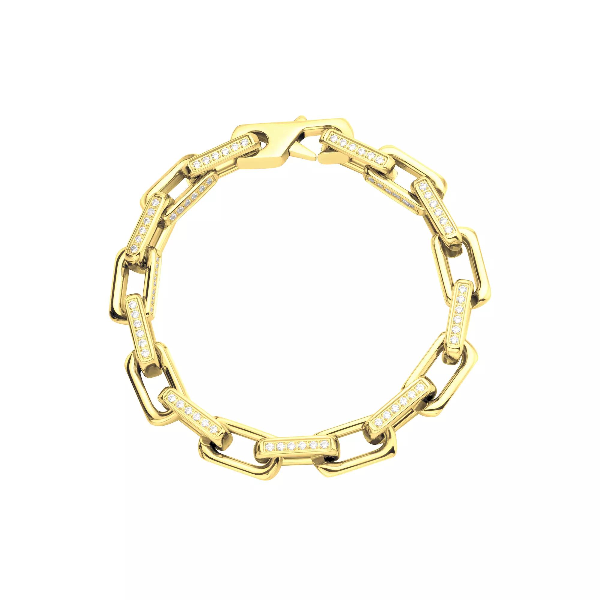 Accessorize in style with this Men's Stainless Steel Oversized Square Links Chunky Bracelet. Click on this JEWELRY & WATCHES GUIDE to learn about fit, styles, materials and more! Accessorize in style with this Men's Stainless Steel Oversized Square Links Chunky Bracelet. Click on this JEWELRY & WATCHES GUIDE to learn about fit, styles, materials and more! FEATURES Chain type: square link Length: 8 in. Chain width: 8 mm Clasp: lobster-claw Nickel free Metal: stainless steel Finish: polished Packaging: boxed ImportedSTONE DETAILS Stone type: cubic zirconia Shape: round Setting: prong Gemstones may have been treated to enhance their appearance. Special care may be required. Please visit our Gemstone Treatment & Special Care Guide for more information. Size: 8". Color: Gold Tone. Gender: male. Age Group: adult.