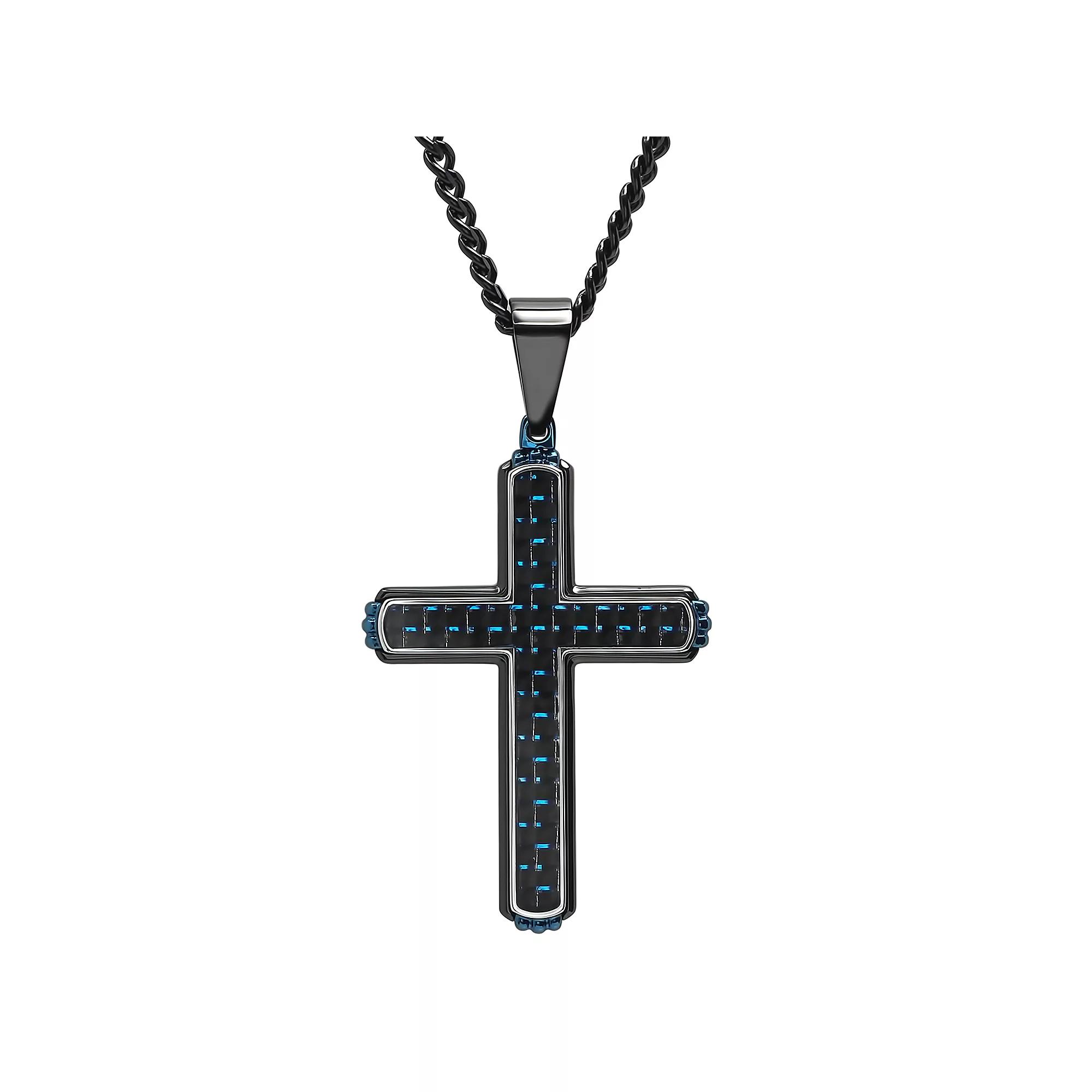 Achieve a bold look with this mens cross pendant necklace, featuring a carbon fiber inlay. NECKLACE DETAILS Pendant length: 2.32 in. Chain length: 24-in. Chain type: curb Clasp: lobster-claw Metal: stainless steel Plating: ion Finish: polished Packaging: velvety pouch Gemstones may have been treated to enhance their appearance. Special care may be required. Image(s) may be enlarged to show detail. Size: 24. Color: Black. Gender: male. Age Group: adult.