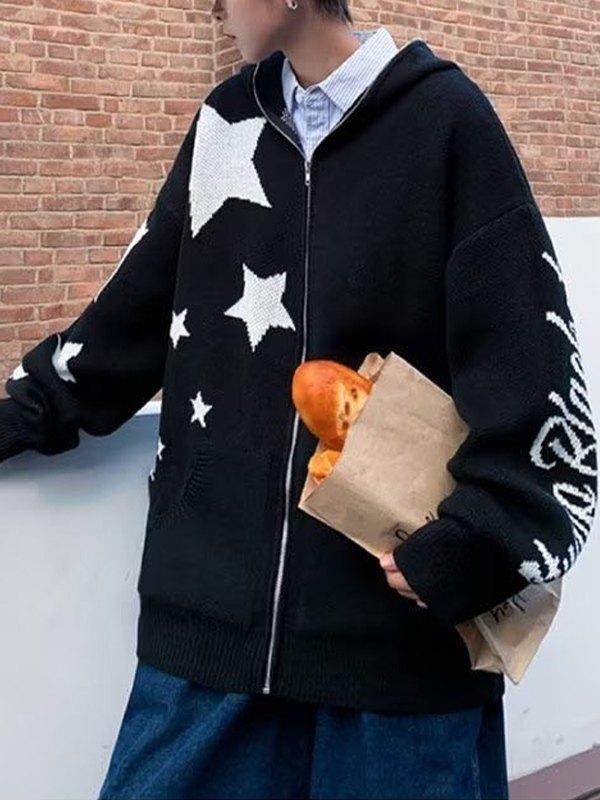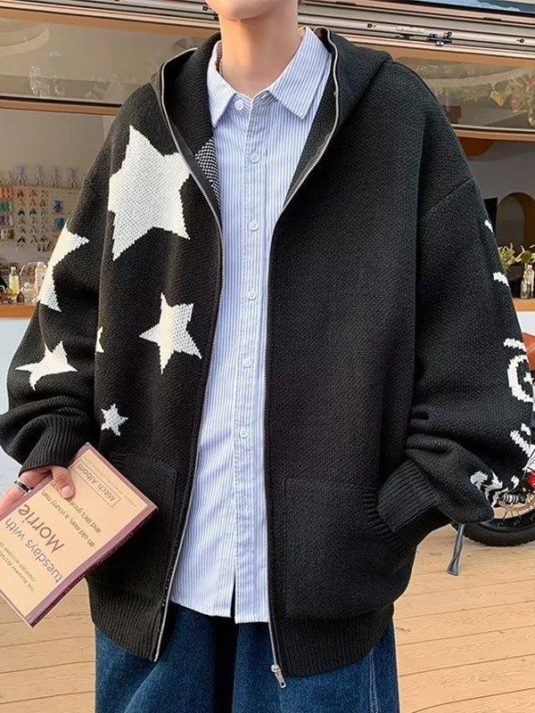 Men's Star Jacquard Zip Up Hooded Cardigan