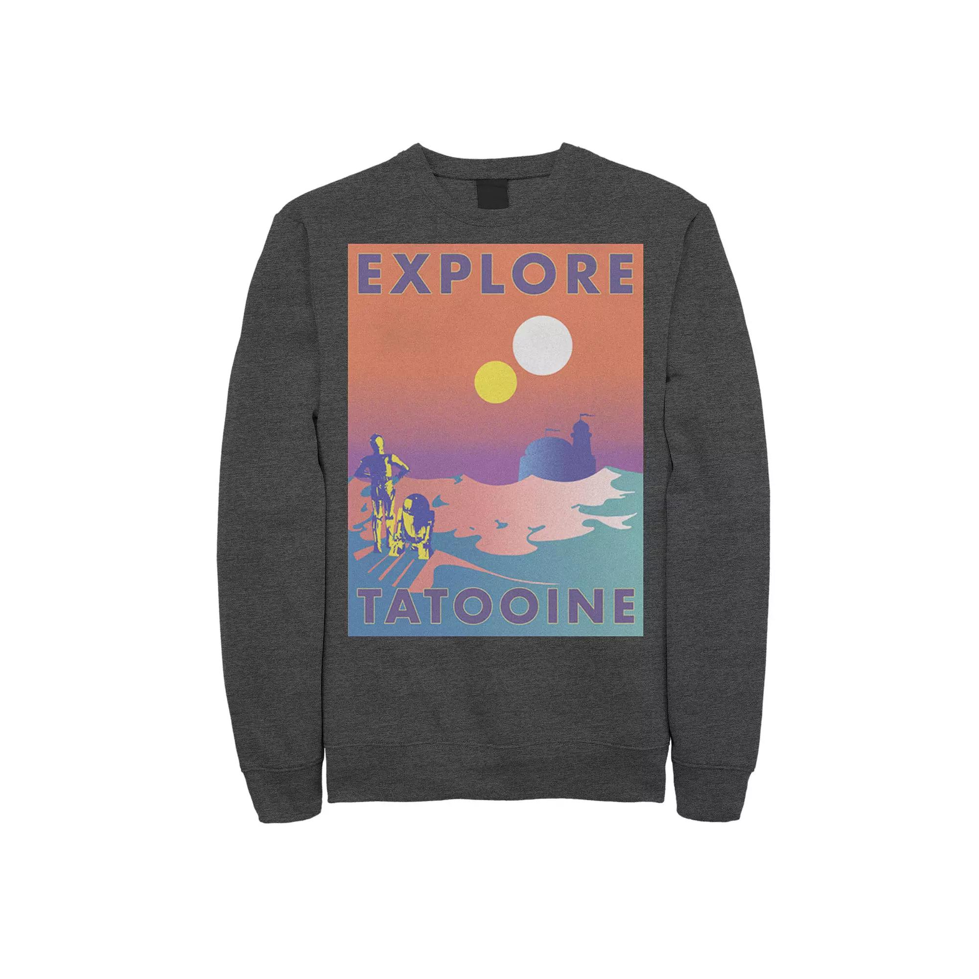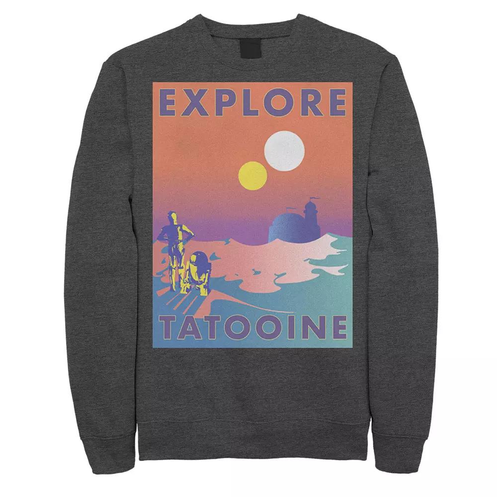 Men's Star Wars Explore Tatooine Faded Retro C-3PO & R2-D2 Poster Sweatshirt,