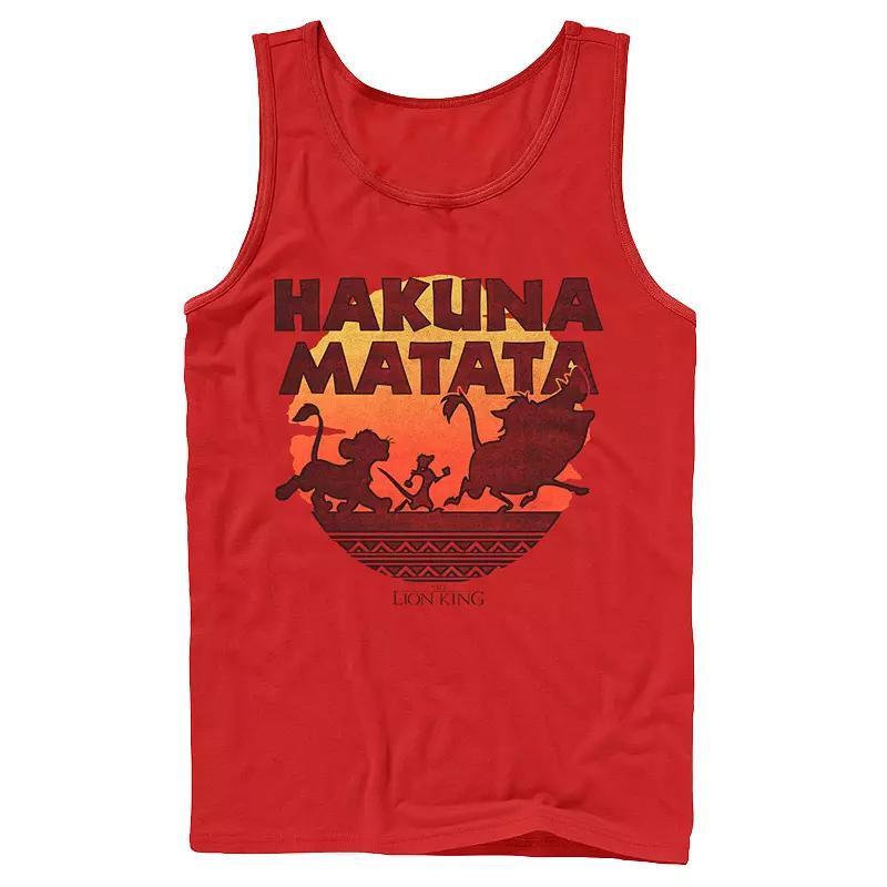Show off your worry-free philosophy with this mens Lion King Hakuna Mata tank. Disney Show off your worry-free philosophy with this mens Lion King Hakuna Mata tank. Disney Crewneck SleevelessFABRIC & CARE Cotton Machine wash Imported Color: Med Blue. Gender: male. Age Group: adult. Pattern: Graphic.