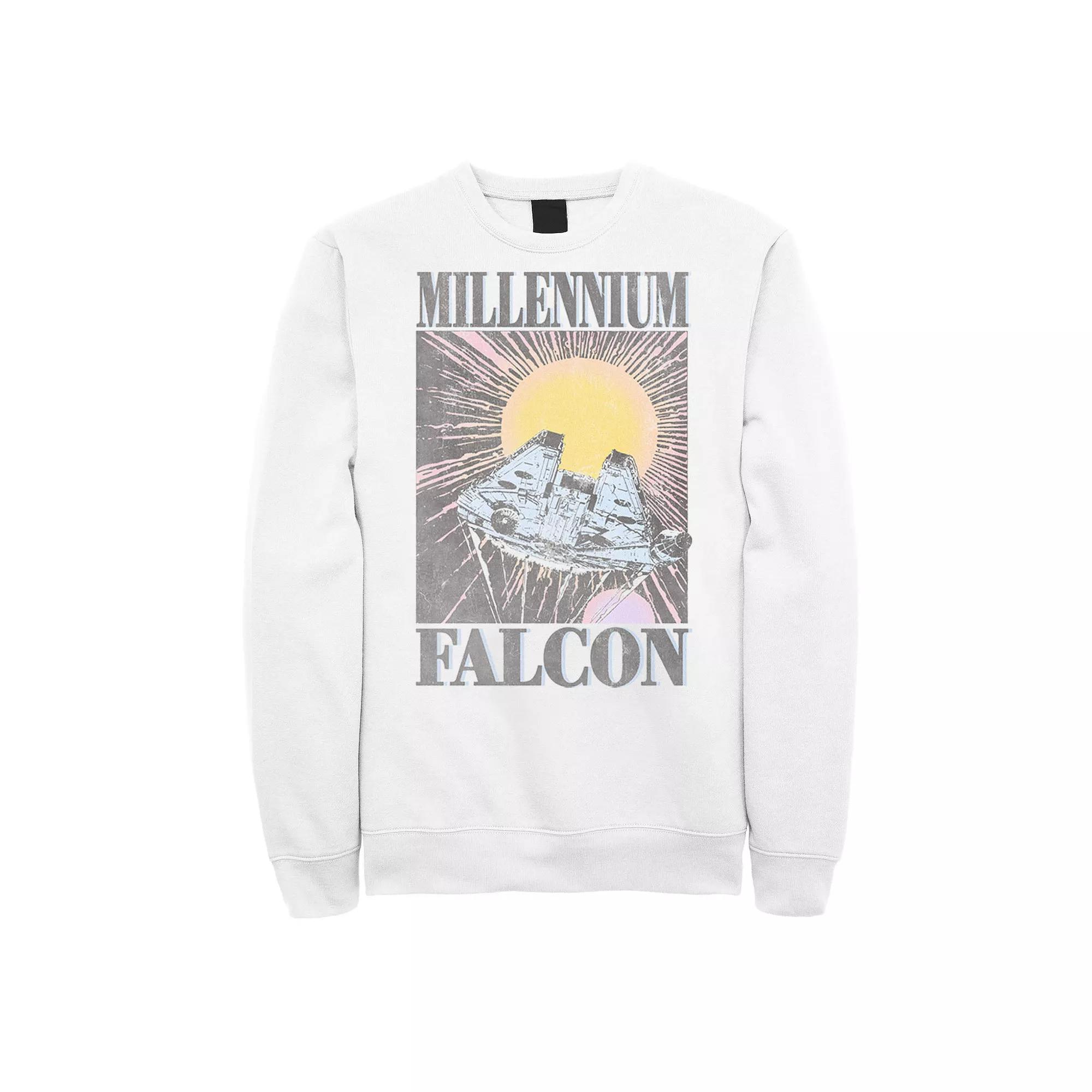 Shift your look into light speed with this mens Millennium Falcon sweatshirt. Shift your look into light speed with this mens Millennium Falcon sweatshirt. Crewneck Long sleevesFABRIC & CARE Cotton, polyester Machine wash Imported Size: XL. Color: White. Gender: male. Age Group: adult. Pattern: Graphic. Material: Polyester|Cotton.