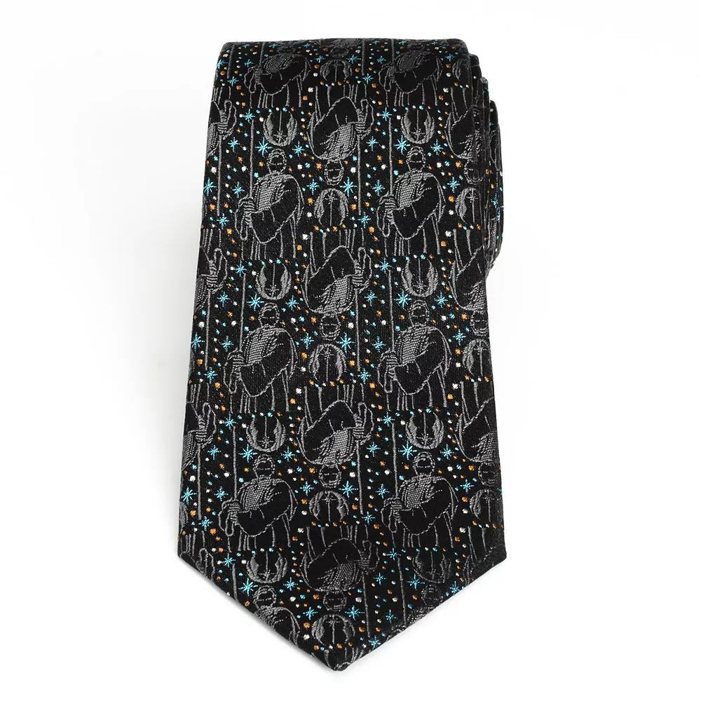 "Hello There." This tie says it all with Obi-Wan's signature stance when greeting General Grievous. This black tie features pops of blue stars and bronze and white dots around Obi-Wan stiched in grey. Made with 100% Silk, take on the day with Obi-Wan by your side. Officially licensed by Lucasfilm LTD. | Star Wars Men's Obi-Wan Kenobi Gray Tie, Black