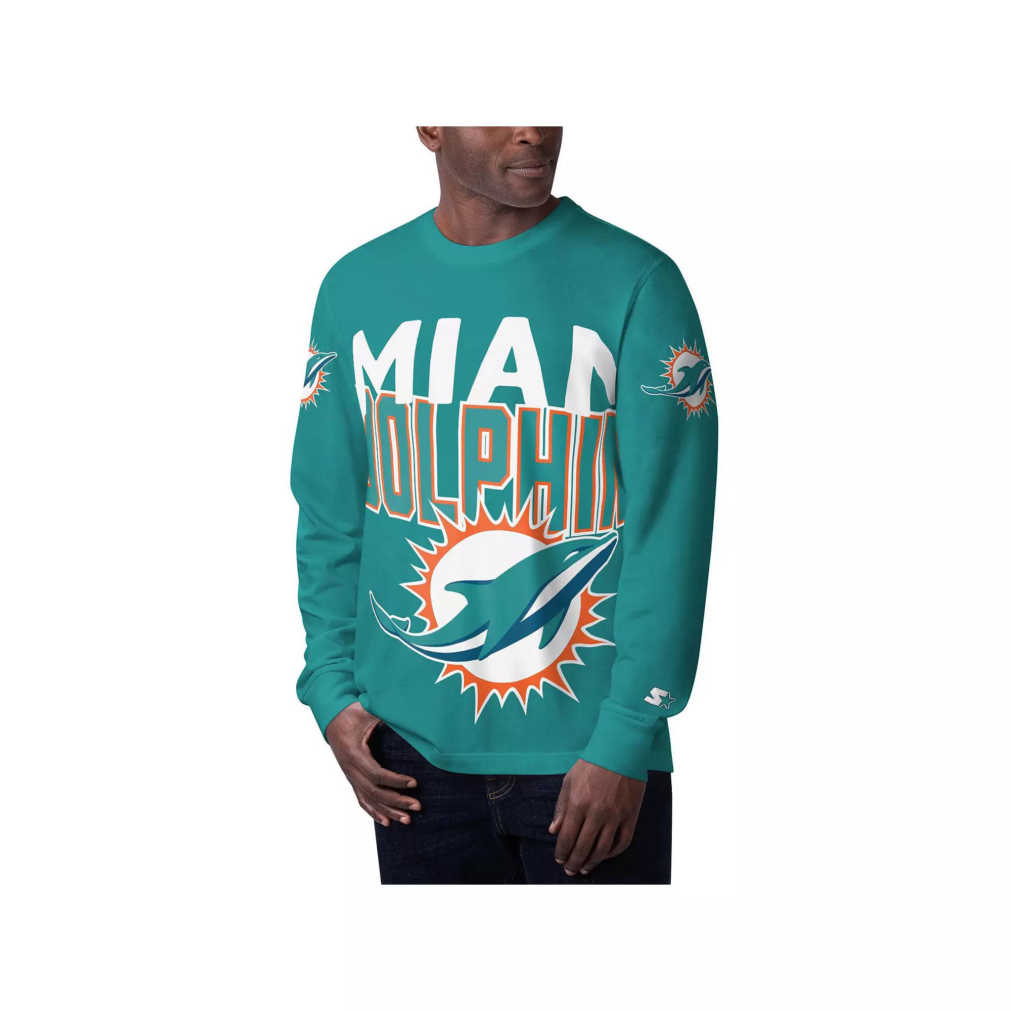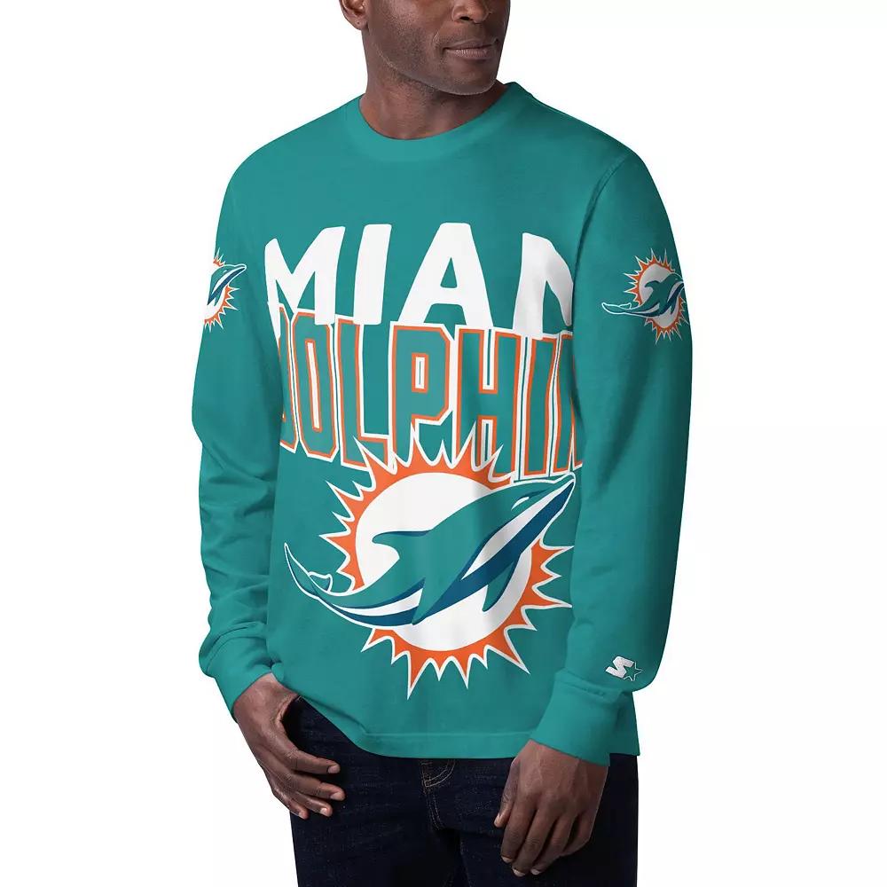 Men's Starter Aqua Miami Dolphins Clutch Hit Long Sleeve T-Shirt,  Product Image