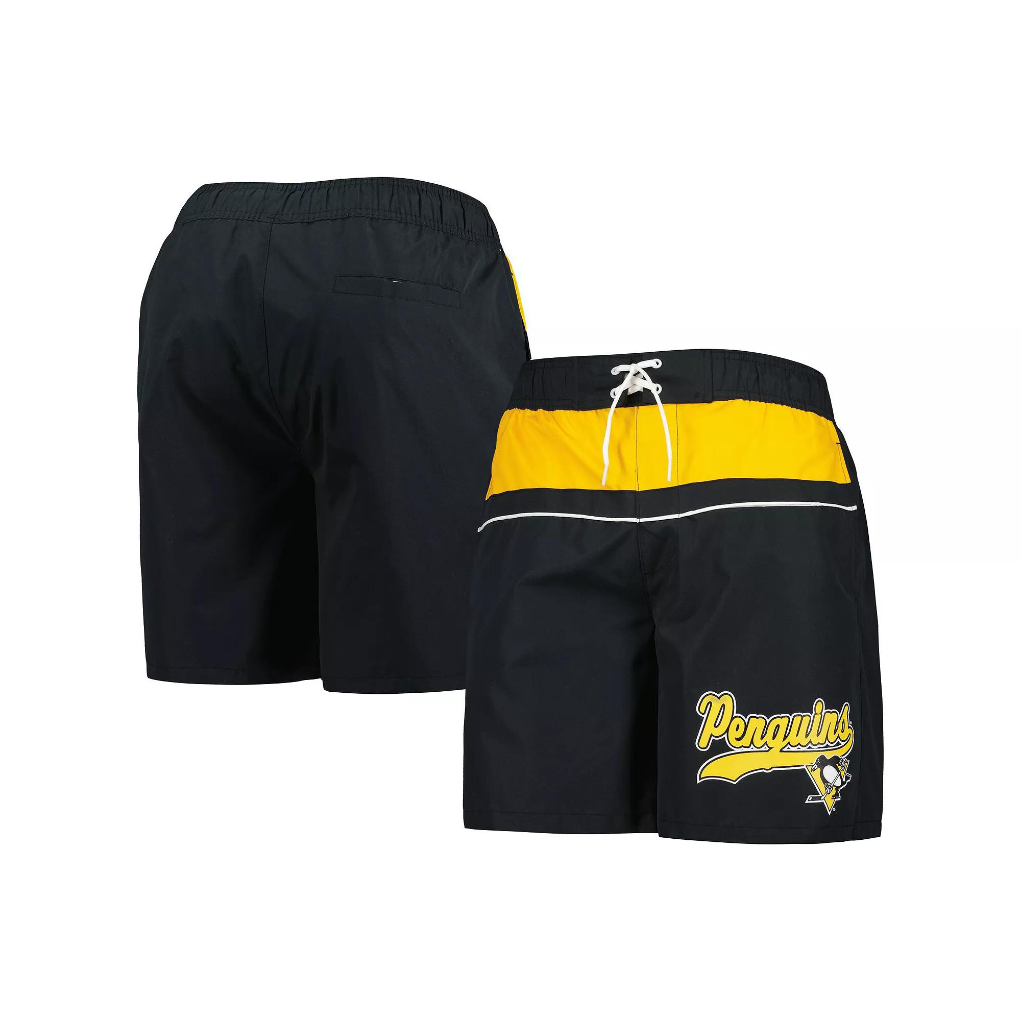 Bring together hockey and the beach with these Pittsburgh Penguins Freestyle Volley swim shorts from Starter. They feature a flexible waistband, multiple pockets and breathable lining. A wide, contrasting stripe also highlights the Pittsburgh Penguins graphics.Bring together hockey and the beach with these Pittsburgh Penguins Freestyle Volley swim shorts from Starter. They feature a flexible waistband, multiple pockets and breathable lining. A wide, contrasting stripe also highlights the Pittsburgh Penguins graphics.PRODUCT FEATURESOne rear pocket with hook-and-loop closureImportedTwo front slip pocketsMaterial: 100% PolyesterMesh liningOfficially licensedInseam on size M measures approx. 7Elastic waistband with faux drawstringFly with hook-and-loop closureBrand: StarterMachine wash, tumble dry lowScreen print graphics Color: Black. Gender: male. Age Group: adult.