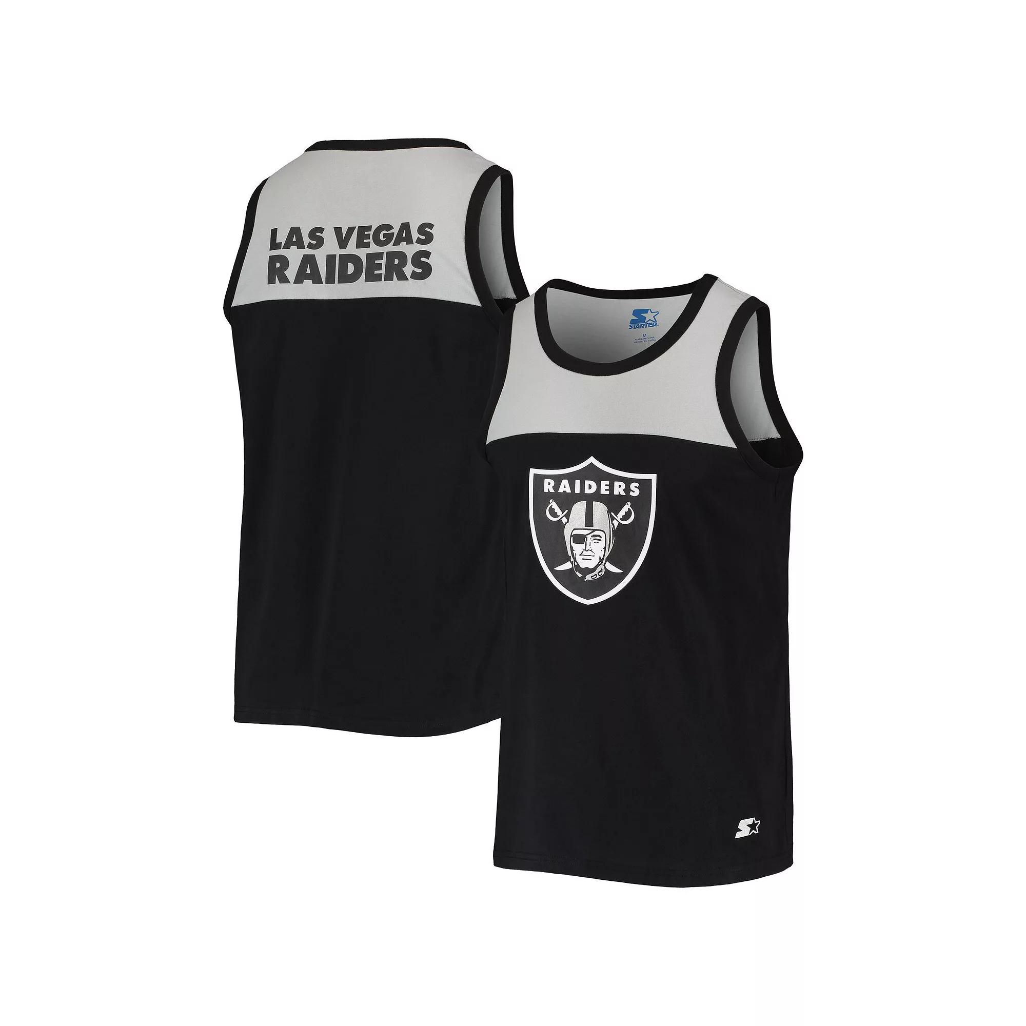 Pair this stylish Las Vegas Raiders tank with a club cap or bottoms for a spirited game day look. This Touchdown Fashion top features a classic crew neck design and comfy fabric that ensures a comfy fit and feel. Eye-catching Las Vegas Raiders graphics make it easy to notice where your allegiance lies.Pair this stylish Las Vegas Raiders tank with a club cap or bottoms for a spirited game day look. This Touchdown Fashion top features a classic crew neck design and comfy fabric that ensures a comfy fit and feel. Eye-catching Las Vegas Raiders graphics make it easy to notice where your allegiance lies.PRODUCT FEATURESBrand: StarterCrew neckImportedMachine wash with garment inside out, tumble dry lowMaterial: 100% CottonOfficially licensedScreen print graphicsSleevelessTagless Collar Color: Black. Gender: male. Age Group: adult.