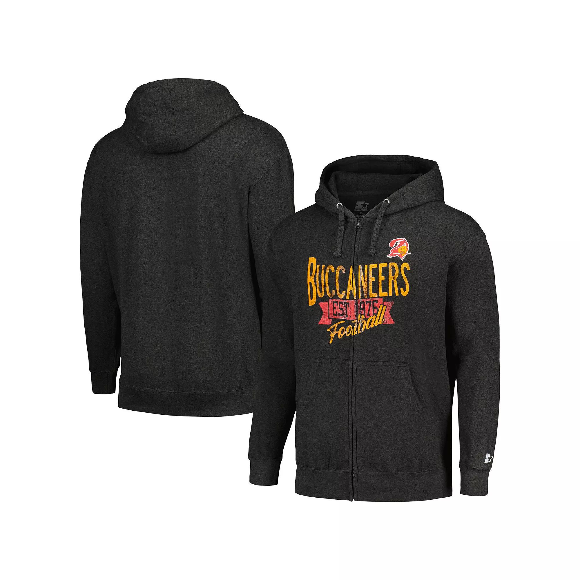 Capture the thrill of game day each time you sport this full-zip Starter Gridiron Classics Post Season hoodie. It features distressed Tampa Bay Buccaneers graphics that offer a vintage take on your fandom. Front pockets supply convenient storage and provide hand warmth.Capture the thrill of game day each time you sport this full-zip Starter Gridiron Classics Post Season hoodie. It features distressed Tampa Bay Buccaneers graphics that offer a vintage take on your fandom. Front pockets supply convenient storage and provide hand warmth.PRODUCT FEATURESOfficially licensedMaterial: 60% Cotton/40% PolyesterHoodedLong sleeveImportedFull ZipTwo front pocketsMachine wash, tumble dry lowLightweight hoodie suitable for mild temperaturesBrand: StarterDistressed screen print graphics Color: Charcoal. Gender: male. Age Group: adult.