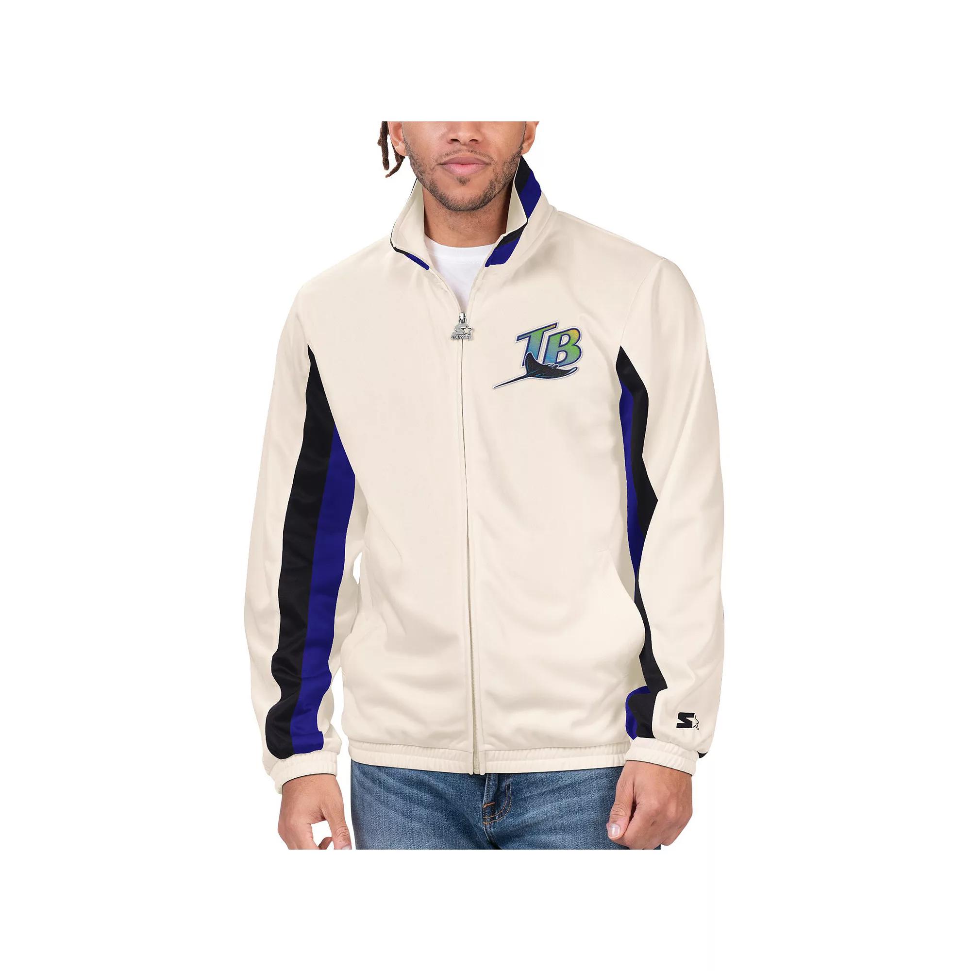 Throw on an eye-catching piece of Tampa Bay Rays outerwear with this Rebound Cooperstown Collection track jacket by Starter. It features a full-zip closure for easily adjusting to temperature changes, team-colored stripes along the sleeves and a throwback embroidered Tampa Bay Rays graphic that puts your fandom forward for all to see. The two pockets offer convenient storage spaces, so youll enjoy a comfortable layering option when you reach for this midweight jacket.Throw on an eye-catching piece of Tampa Bay Rays outerwear with this Rebound Cooperstown Collection track jacket by Starter. It features a full-zip closure for easily adjusting to temperature changes, team-colored stripes along the sleeves and a throwback embroidered Tampa Bay Rays graphic that puts your fandom forward for all to see. The two pockets offer convenient storage spaces, so youll enjoy a comfortable layering option when you reach for this midweight jacket.PRODUCT FEATURESOfficially licensedMaterial: 100% PolyesterSewn-in, contrast-color stripesLong sleeveFull ZipMidweight jacket suitable for moderate temperaturesOlympic collarTwo side pocketsMachine wash, tumble dry lowImportedBrand: StarterEmbroidered graphics Size: 2XL. Color: Beige. Gender: male. Age Group: adult. Material: Cotton.