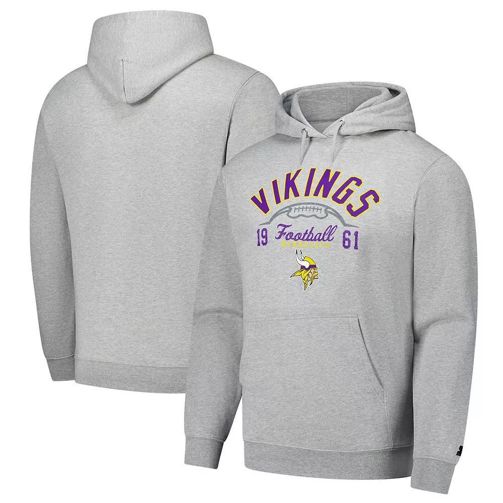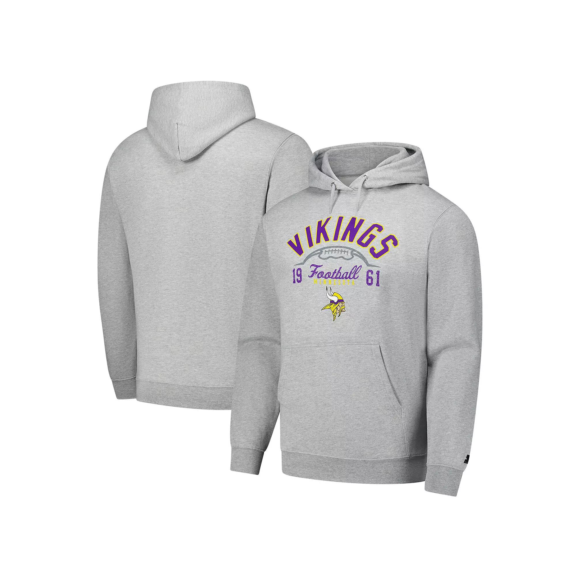 Stay warm while repping your Minnesota Vikings pride with this Starter Pullover Hoodie. This classic pullover design features a printed team wordmark, logo and established date on the front, showcasing your Minnesota Vikings pride in style. The soft fleece lining provides an extra layer of warmth, making it perfect for those chilly game days or casual outings during the colder months.Stay warm while repping your Minnesota Vikings pride with this Starter Pullover Hoodie. This classic pullover design features a printed team wordmark, logo and established date on the front, showcasing your Minnesota Vikings pride in style. The soft fleece lining provides an extra layer of warmth, making it perfect for those chilly game days or casual outings during the colder months.PRODUCT FEATURESHoodedPulloverOfficially licensedMaterial: 50% Cotton/50% PolyesterBrand: StarterMidweight sweatshirt suitable for moderate temperaturesImportedSoft fleece lining for an extra layer of warmthLong sleevePrinted team wordmark, logo and established date on front torsoMachine wash, tumble dry lowFront pouch pocket provides organization for small items Size: XXL. Color: Grey. Gender: male. Age Group: adult.