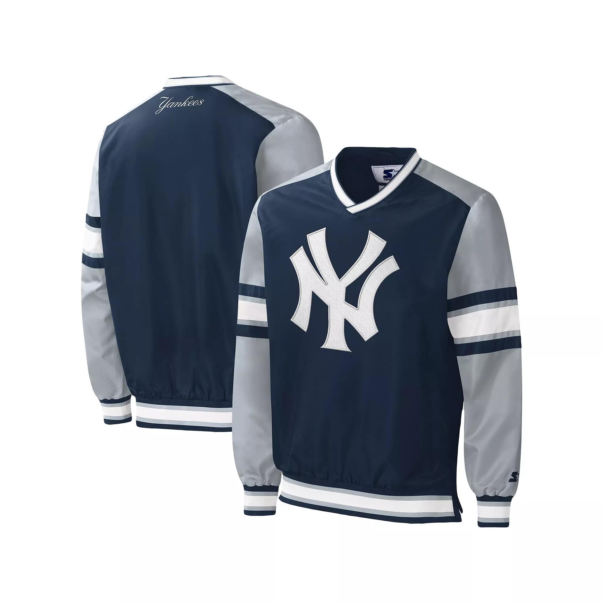 For coverage, style and ease of wear, sport this Yardline pullover windbreaker by Starter. A bold New York Yankees design with striking team graphics makes for the ultimate look. Its lightweight, nylon construction resists winds and offers coverage for the perfect layering option.For coverage, style and ease of wear, sport this Yardline pullover windbreaker by Starter. A bold New York Yankees design with striking team graphics makes for the ultimate look. Its lightweight, nylon construction resists winds and offers coverage for the perfect layering option.Officially licensedSewn-on sleeve stripesMachine wash, tumble dry lowLong sleeveEmbroidered graphicsBrand: StarterElastic cuffs and waistbandPulloverSublimated stripesSide seam zipperImportedLightweight top suitable for mild temperaturesMaterial: 100% Nylon - Shell; 100% Polyester - Lining and Knit Size: 2XL. Color: Navy. Gender: male. Age Group: adult.