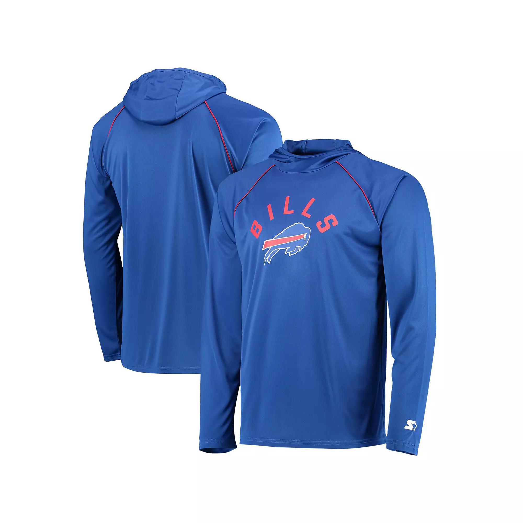 Add an extra touch of comfort to your typical tee by wearing this Buffalo Bills Hoodie T-shirt from Starter. It features noticeable Buffalo Bills graphics printed across the front. Raglan sleeves embellished with contrast-color piping finish off the look.