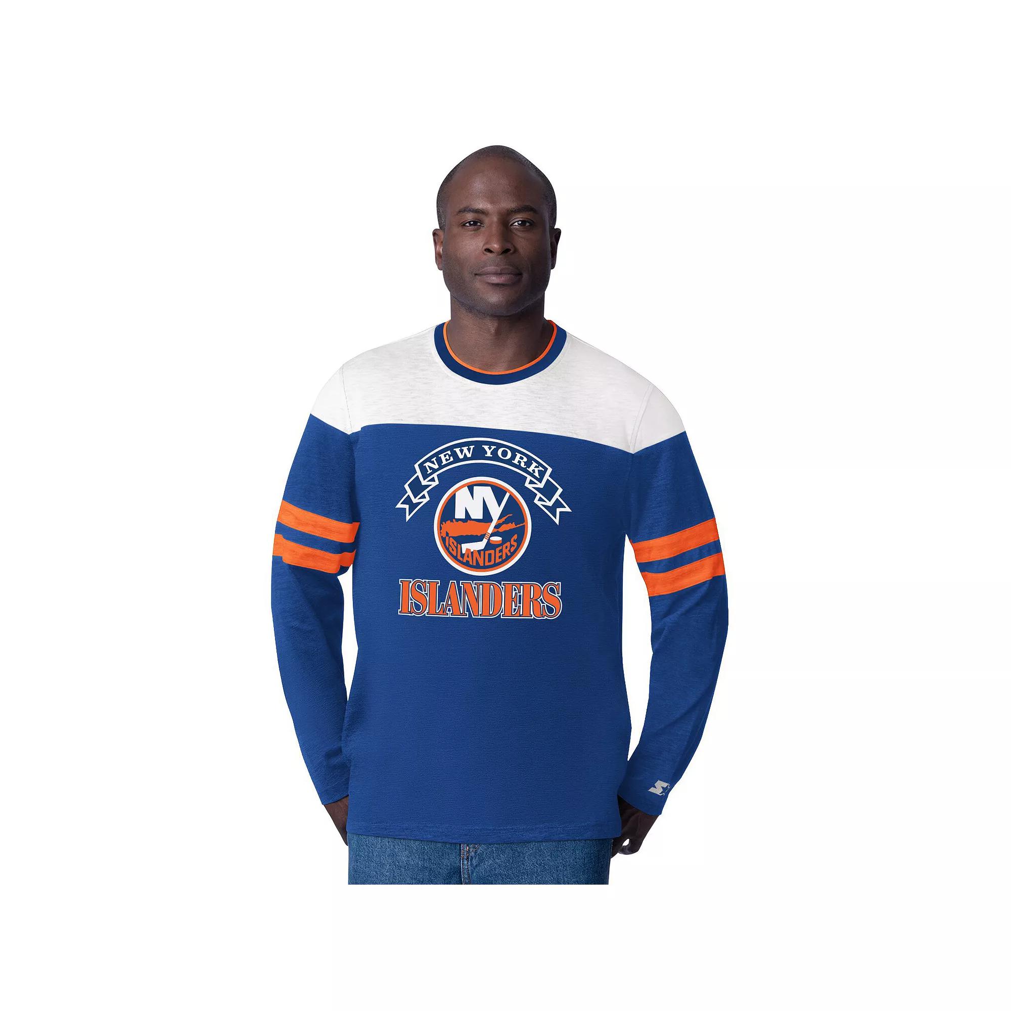 Channel the vintage vibes of your favorite hockey team with the St. Louis Blues Blitz Durene Long Sleeve T-Shirt from Starter. Featuring screen print St. Louis Blues graphics with a self-fabric team wordmark applique at the front, everyone will know who you're rooting for. Its rib-knit crew neck and droptail hem provide a classic look and flattering fit.Channel the vintage vibes of your favorite hockey team with the St. Louis Blues Blitz Durene Long Sleeve T-Shirt from Starter. Featuring screen print St. Louis Blues graphics with a self-fabric team wordmark applique at the front, everyone will know who you're rooting for. Its rib-knit crew neck and droptail hem provide a classic look and flattering fit.PRODUCT FEATURESMaterial: 55% Cotton/45% PolyesterBrand: StarterDroptail hem for a flattering fit and ease of stylingOfficially licensedImportedRib-knit crew neck for a classic lookScreen print team name at upper backScreen print team graphic with self-fabric team wordmark applique at frontSewn-on stripes at sleevesMachine wash, tumble dry lowLong sleeve Size: M. Gender: male. Age Group: adult.