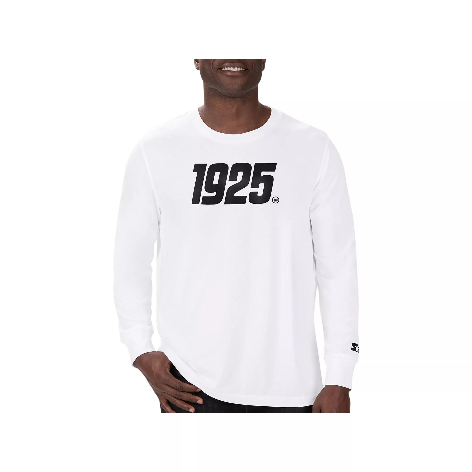 The New York Giants and Starter, two iconic brands, join forces to deliver fans an exceptional apparel experience that transcends traditional merchandise. With this 1925 Collection Long Sleeve T-Shirt, celebrate a century of gridiron glory in gear that blends vintage designs and modern craftsmanship. Deluxe fabric melds seamlessly with a custom 1925 insignia inspired by the iconic New York Giants wordmark and primary logo. It is a timeless tribute to a storied franchise and its passionate fan base.The New York Giants and Starter, two iconic brands, join forces to deliver fans an exceptional apparel experience that transcends traditional merchandise. With this 1925 Collection Long Sleeve T-Shirt, celebrate a century of gridiron glory in gear that blends vintage designs and modern craftsmanship. Deluxe fabric melds seamlessly with a custom 1925 insignia inspired by the iconic New York Giants wordmark and primary logo. It is a timeless tribute to a storied franchise and its passionate fan base.PRODUCT FEATURESLong sleeveCrew neckSelf-fabric collar, cuffs and hemMachine wash, tumble dry lowOfficially licensedBrand: StarterScreen print graphicsImportedMaterial: 100% Cotton Color: White. Gender: male. Age Group: adult.
