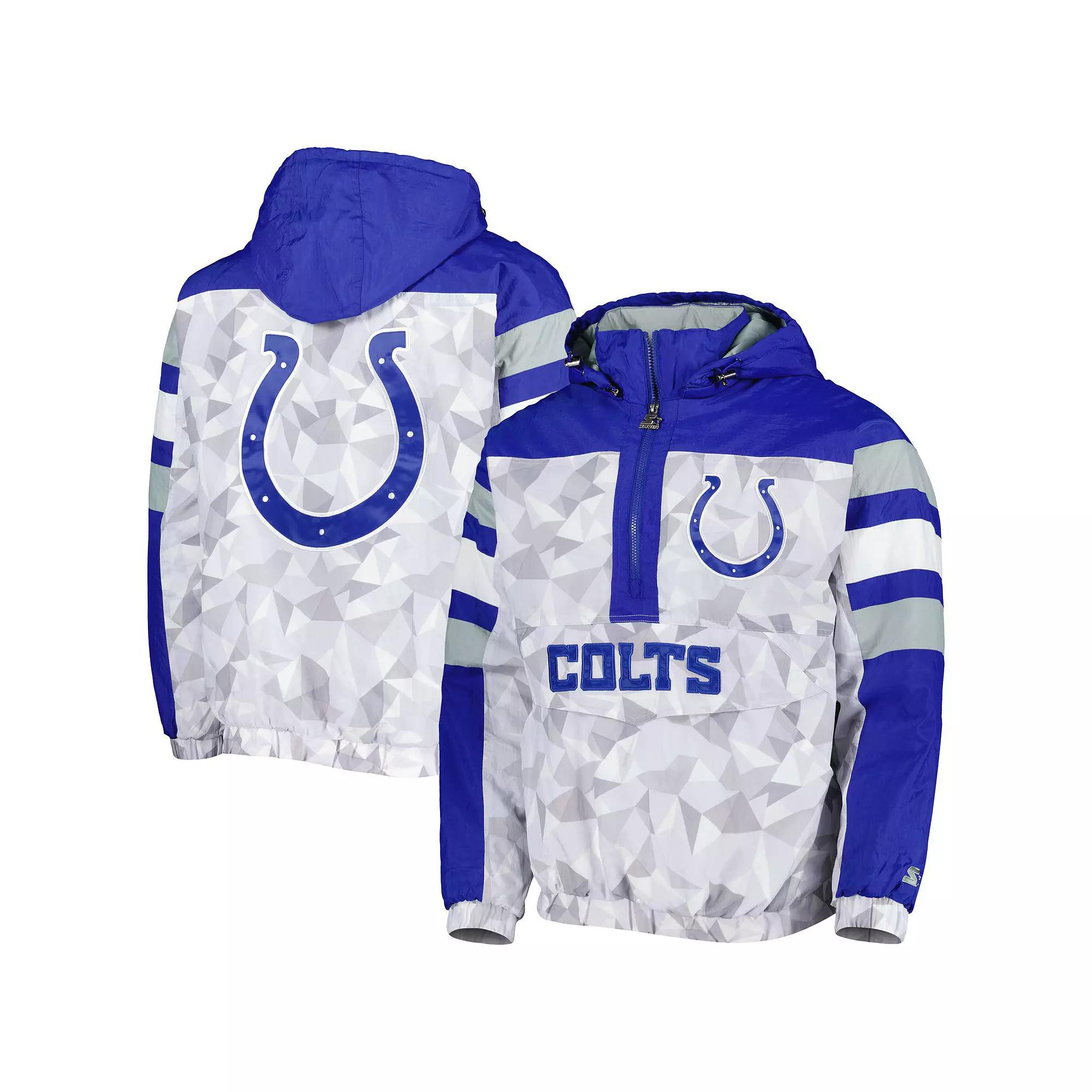 Show your Indianapolis Colts fandom in any weather with this Thursday Night Gridiron jacket from Starter. The bold graphics and covered front pocket make this jacket both functional and fashionable. The rain-resistant fabric and detachable hood with adjustable toggles ensure that youre protected from the elements while cheering your Indianapolis Colts to victory.Show your Indianapolis Colts fandom in any weather with this Thursday Night Gridiron jacket from Starter. The bold graphics and covered front pocket make this jacket both functional and fashionable. The rain-resistant fabric and detachable hood with adjustable toggles ensure that youre protected from the elements while cheering your Indianapolis Colts to victory.PRODUCT FEATURES1/2-ZipMaterial: 100% Nylon Shell; 100% Polyester Lining and FillerDetachable hood with zipper and adjustable cord and togglesZippered left side seamLong sleeveMachine wash, tumble dry lowOfficially licensedElastic waistband and cuffsFront utility pocket with hook and loop closure cover flapLocker loop inside collarImportedBrand: StarterFront pouch pocketHeavyweight jacket suitable for cold temperaturesSublimated fabricQuilted liningMock neckEmbroidered fabric applique Size: 2XL. Color: White. Gender: male. Age Group: adult.