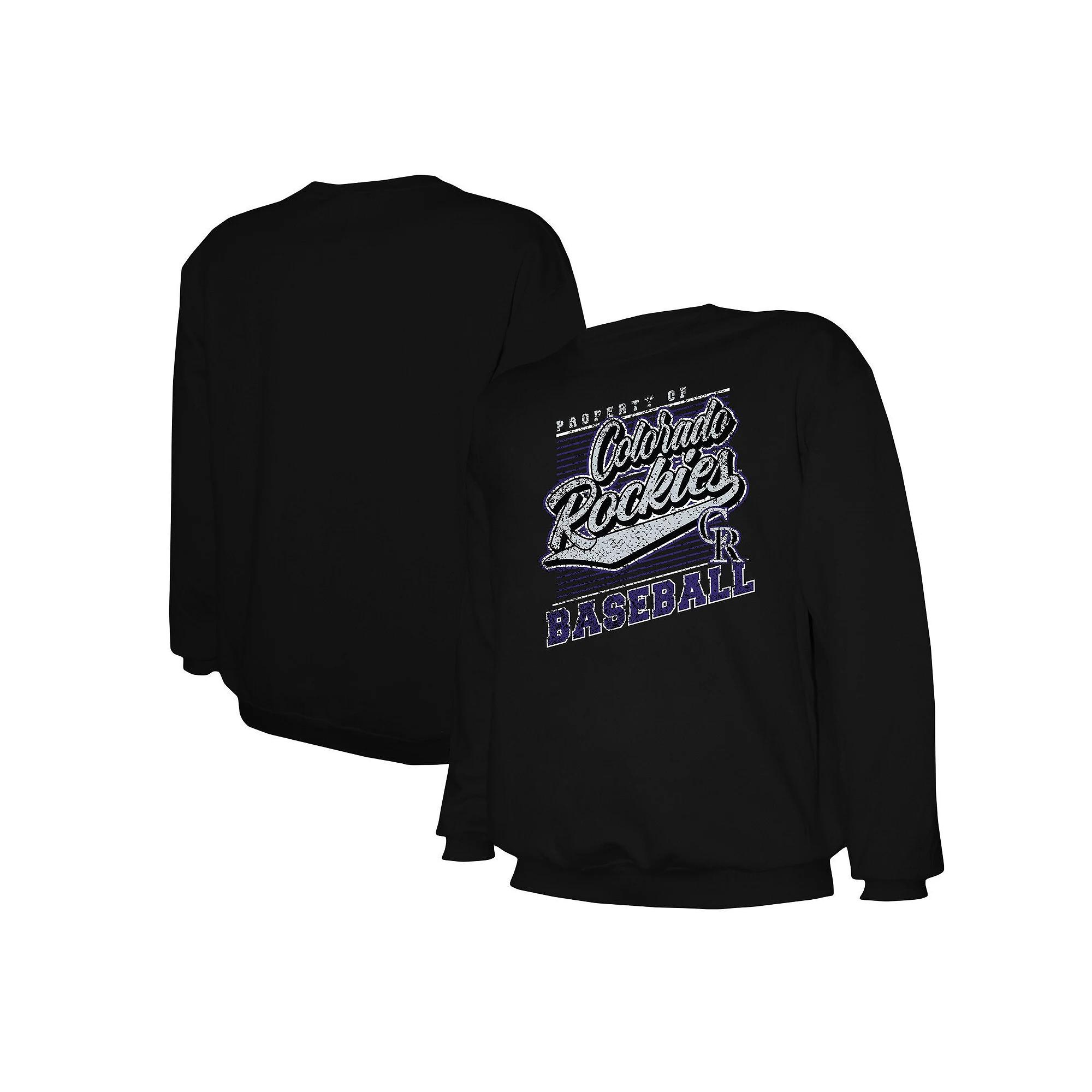 Stay warm while repping your Colorado Rockies with this Stitches Pullover Sweatshirt. This midweight sweatshirt is perfect for moderate temperatures, keeping you cozy without overheating. Fleece lining adds an extra layer of warmth and a soft feel, while distressed screen print graphics lend a vintage look that's sure to turn heads.Stay warm while repping your Colorado Rockies with this Stitches Pullover Sweatshirt. This midweight sweatshirt is perfect for moderate temperatures, keeping you cozy without overheating. Fleece lining adds an extra layer of warmth and a soft feel, while distressed screen print graphics lend a vintage look that's sure to turn heads.PRODUCT FEATURESImportedFleece lining for a soft feel and an added layer of warmthOfficially licensedCrew neckPulloverBrand: StitchesScreen print graphics with distressed detail for a vintage lookLong sleeveMidweight sweatshirt suitable for moderate temperatures Color: Black. Gender: male. Age Group: adult.