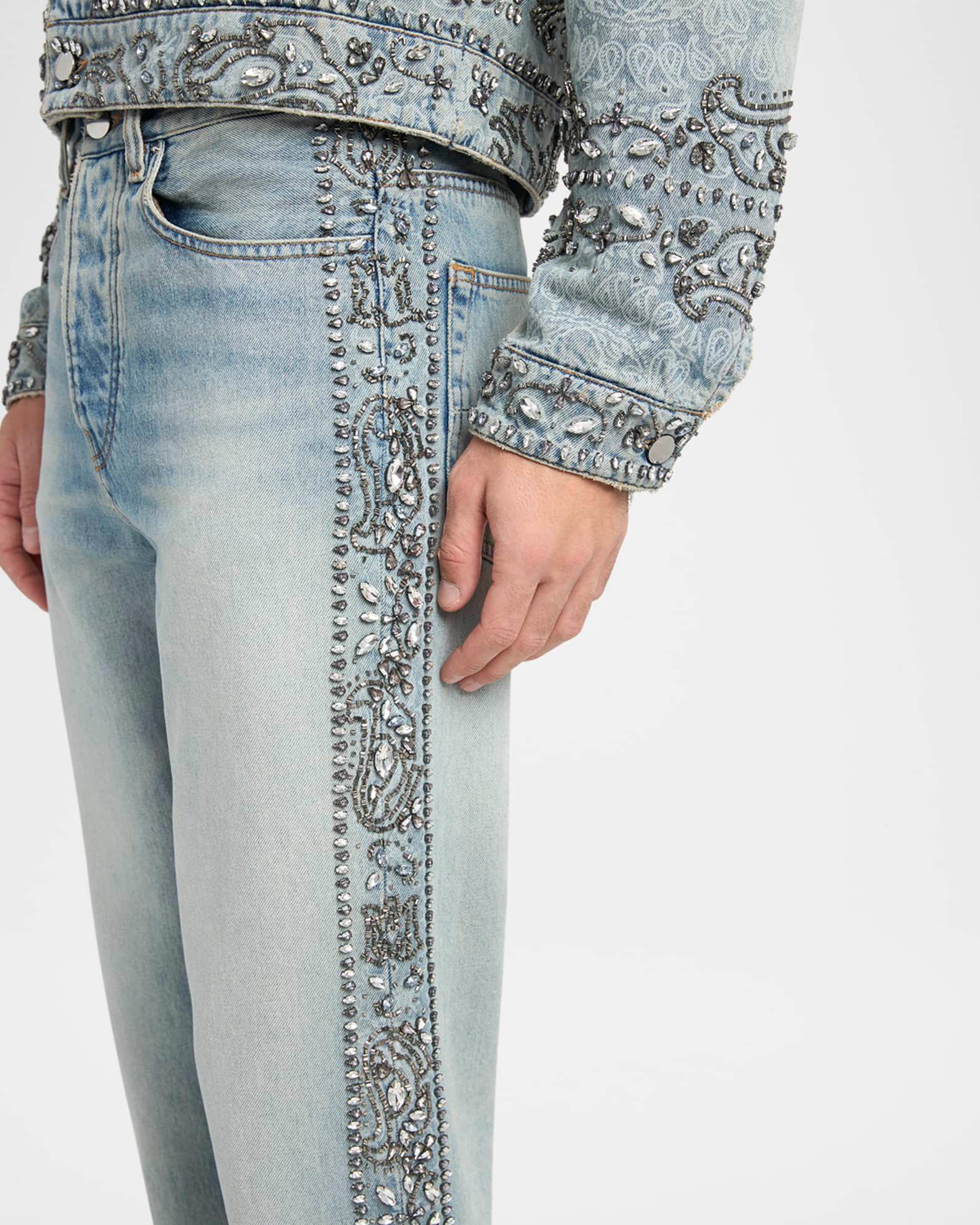 Men's Straight-Fit Crystal Bandana Jeans