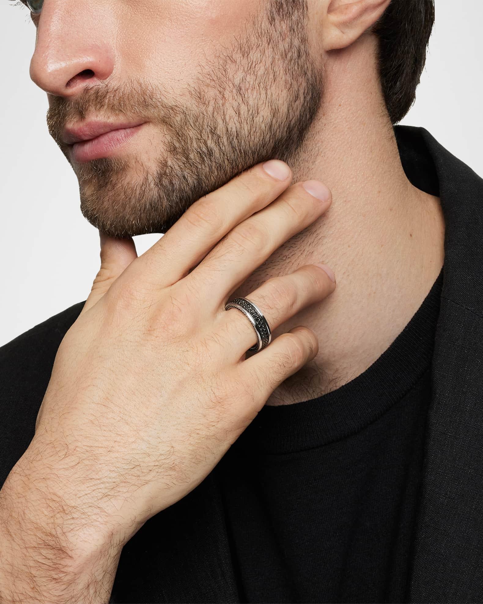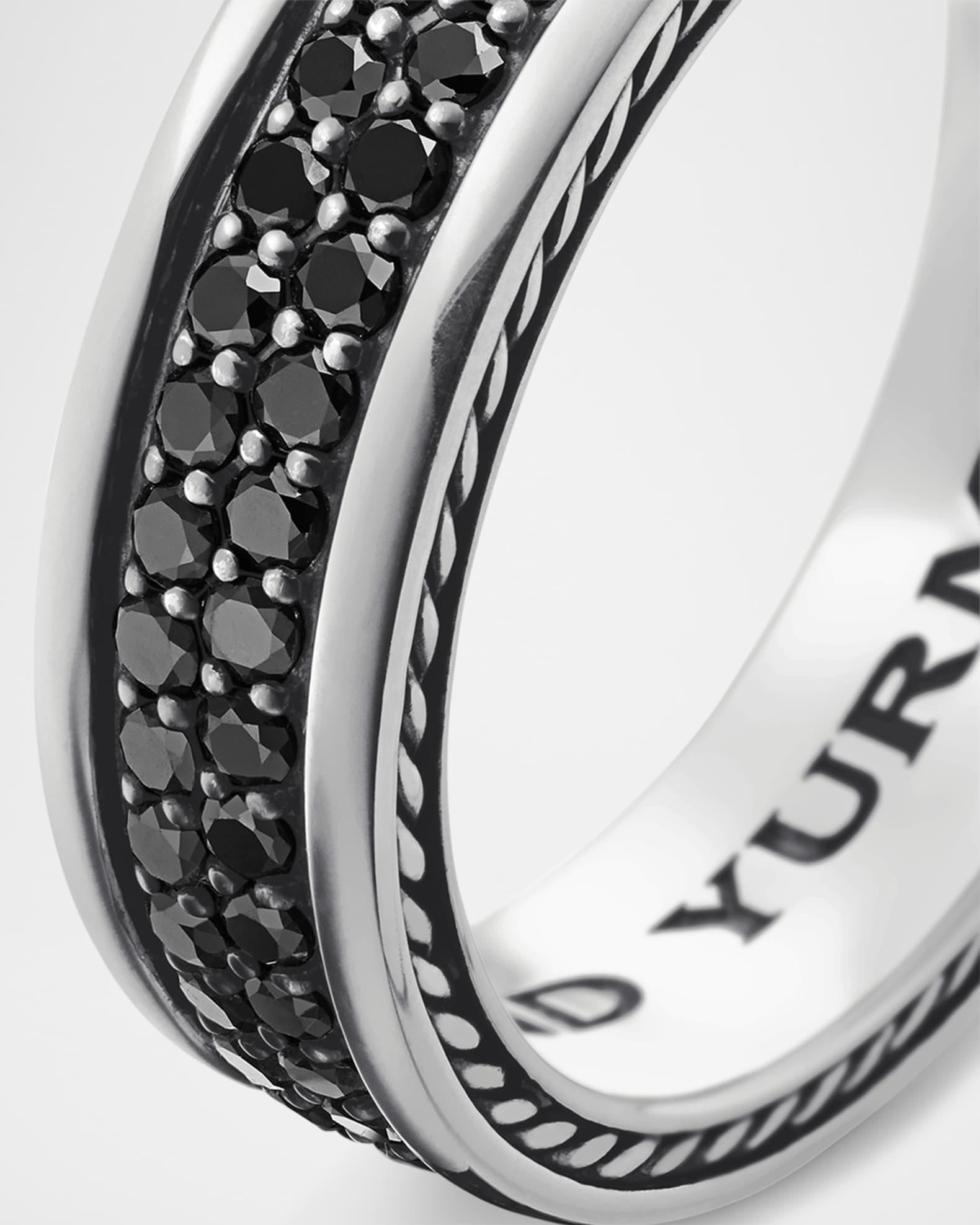 Sterling silver Pav%26#233; black diamonds 6.5mm wide Care Instructions: Use the provided polishing cloth to gently wipe this item clean, then remove any remaining tarnish with mild diluted soap. Rinse with warm water, dry with a clean towel and store it in its jewelry pouch. Please note: Styles featuring meteorite should not be exposed to water.