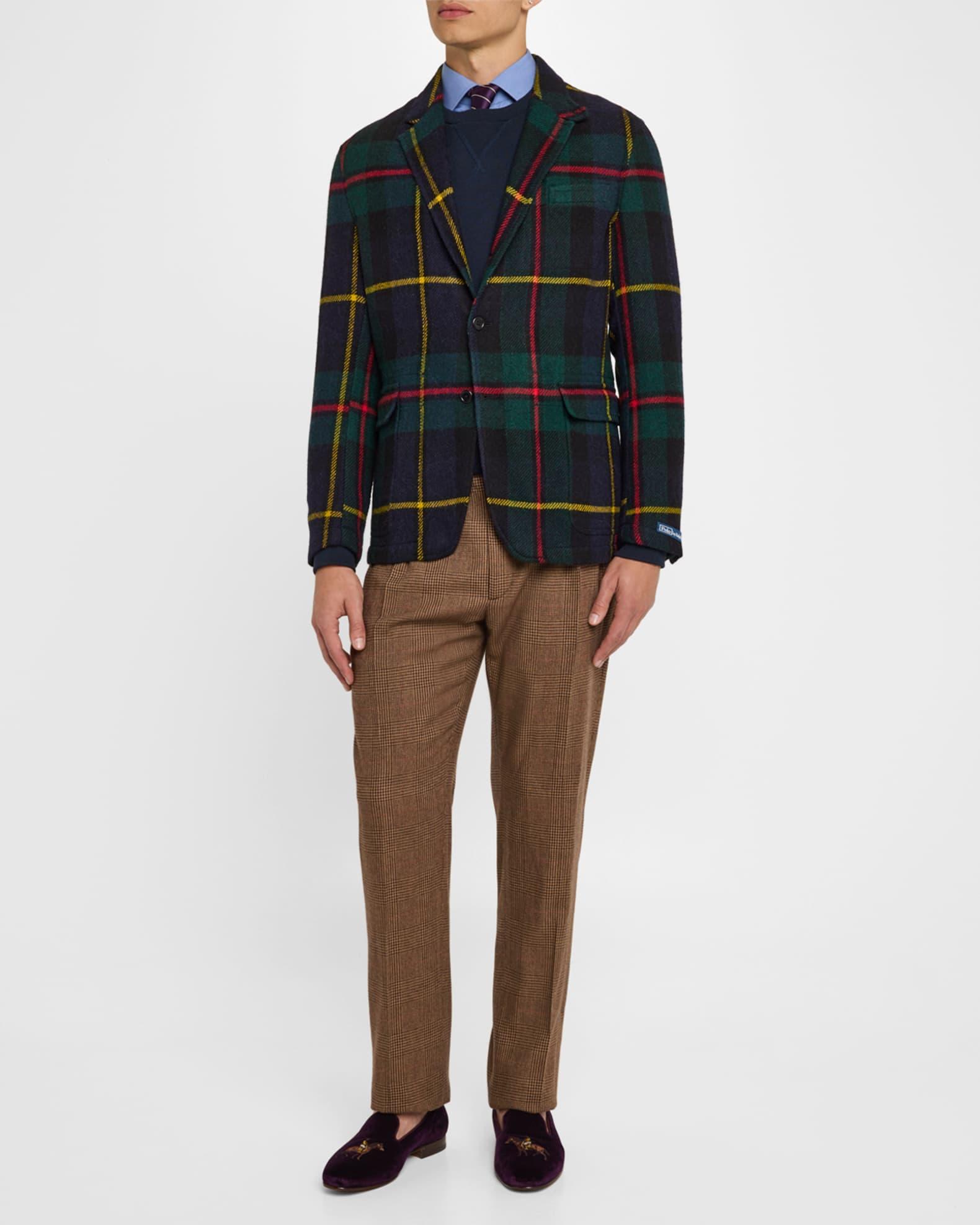 Crafted of soft wool, Polo Ralph Laurens blazer showcases a signature plaid design. This piece features notch lapels, chest welt pocket, and front flap pockets. Notch lapels Long sleeves, button cuffs Chest welt pocket Front flap pockets Button-front closure 100% wool Lining: 70% wool/30% viscose Made in Portugal SIZE & FIT About 29.5 from shoulder to hem Model measurements: 62 tall Model is wearing a US size Medium. Men Luxury Coll - Polo Blue Label > Polo Ralph Lauren > Saks Fifth Avenue > Barneys. Polo Ralph Lauren. Color: Blckwtchwithyellowandred. Size: 46.