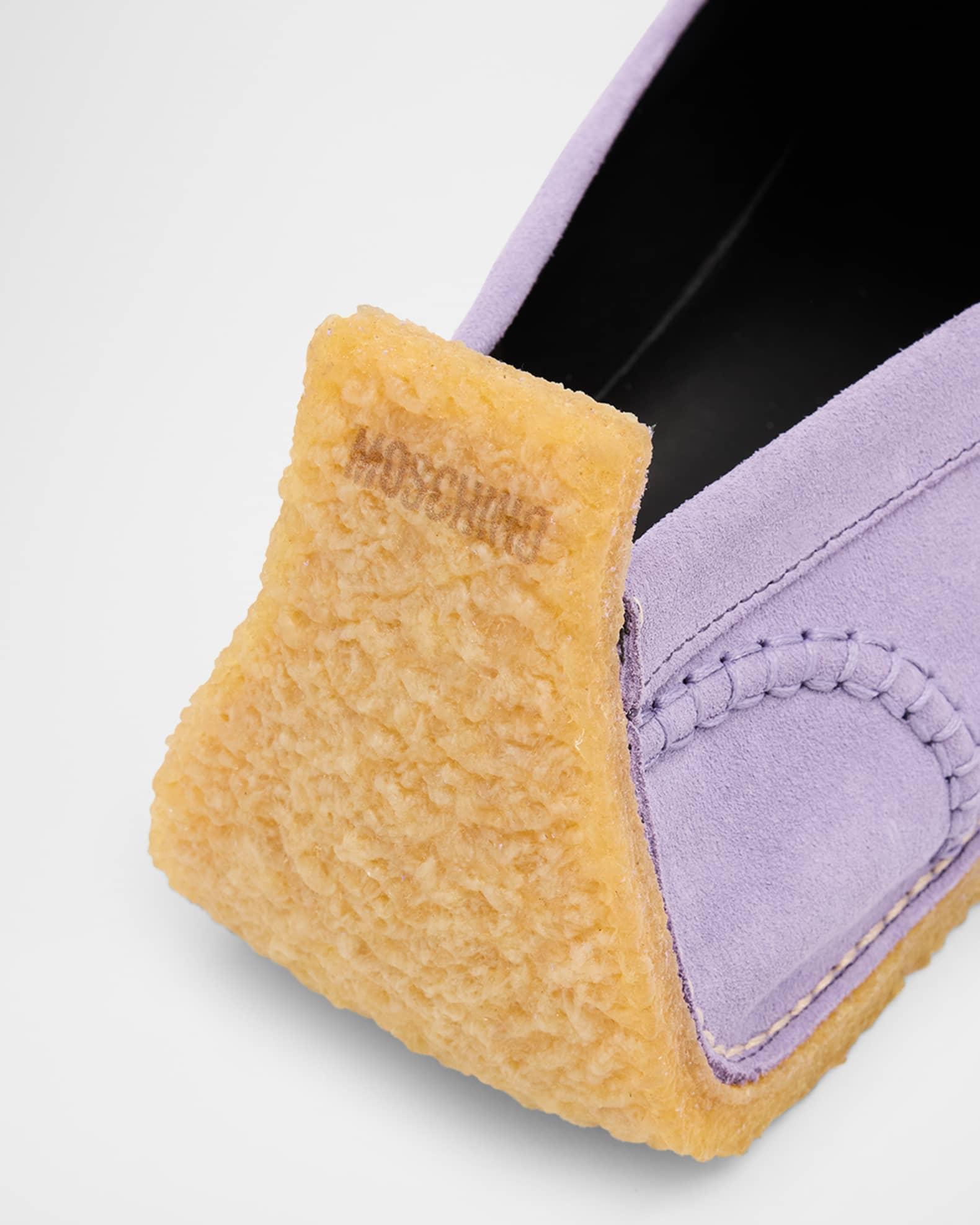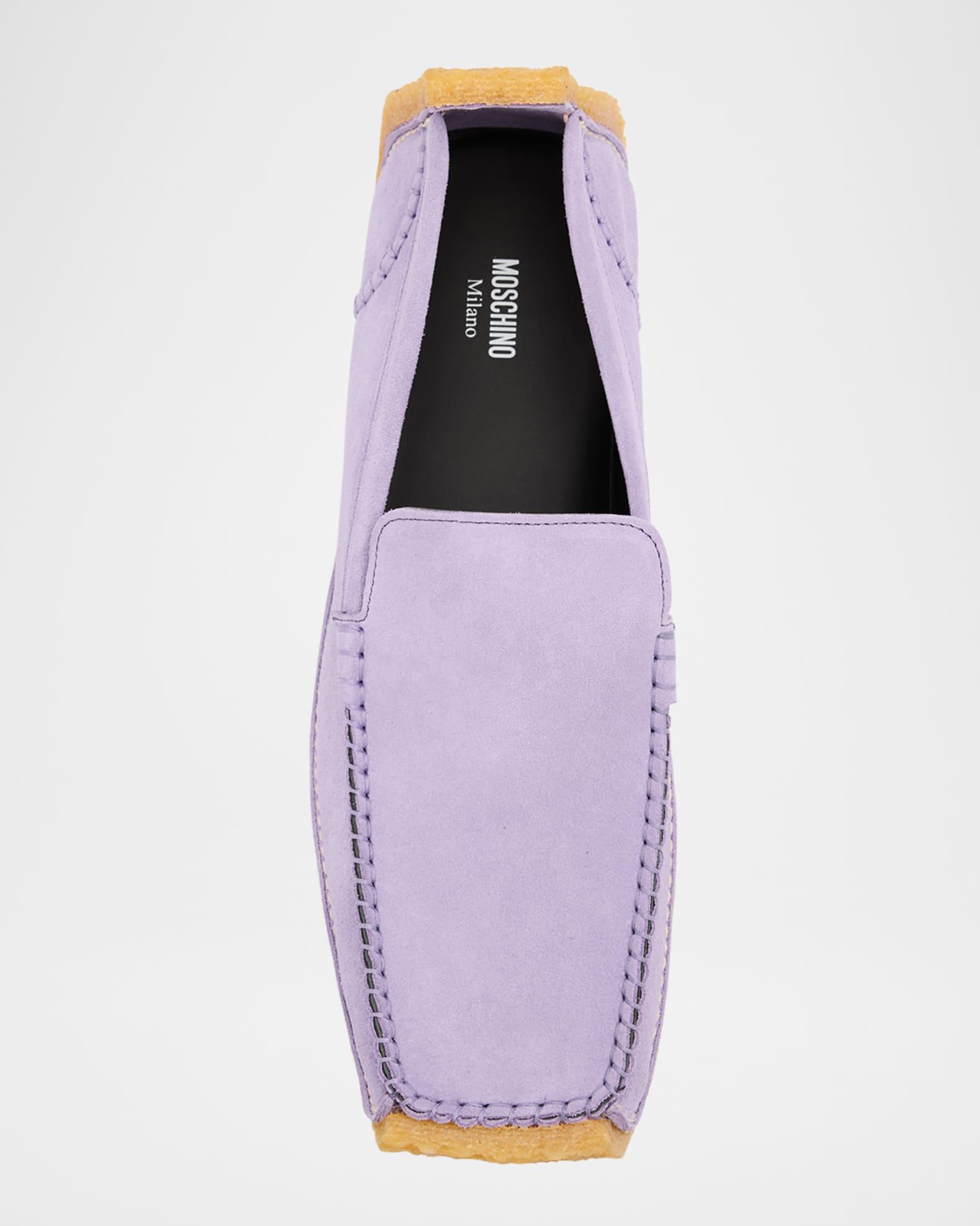 Moschino moccasins in calf suede Flat heel Square toe Notched vamp Slip-on style Lining: Leather Made in Portugal