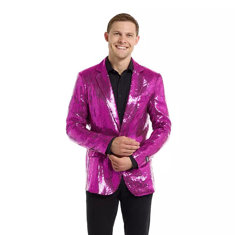 Turn heads in this Mens Suitmeister Christmas New Years Eve Party Blazer. Turn heads in this Mens Suitmeister Christmas New Years Eve Party Blazer. FEATURES Button front Long sleeve Cuffed One left inside pocket Button fly Jacket: 3 front faux pocketsFIT & SIZING NA Slim fitFABRIC & CARE Polyester Lining: polyester Machine wash Imported Color: Sequins Pink. Gender: male. Age Group: adult.